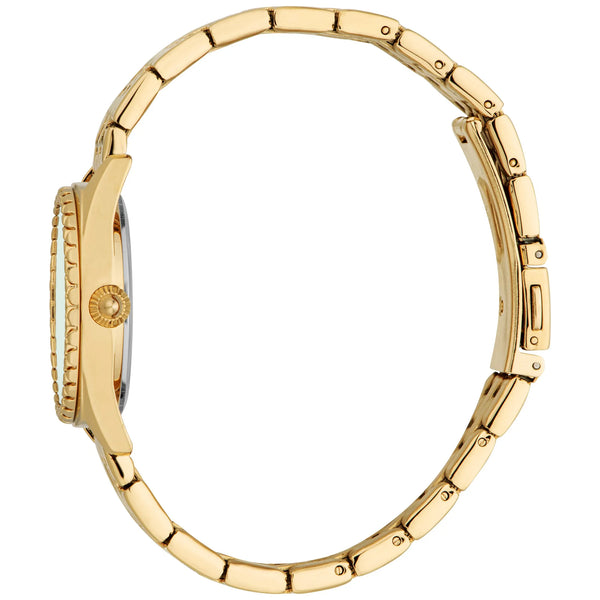 Im Bereich der Mode, wo Eleganz auf Kühnheit trifft, entsteht eine Uhr, die den Geist der modernen Frau verkörpert: die Just Cavalli Watch. Gefertigt in einer raffinierten runden Form, ist diese Uhr ein Zeugnis für das Engagement der Marke für mutiges Design und exquisite Handwerkskunst. Das Gehäuse aus Gelbgold mit einem Durchmesser von 30 mm strahlt Luxus und Raffinesse aus, perfekt ergänzt durch das passende Edelstahlarmband. Die Schmetterlingsfaltschließe mit Druckknopf sorgt für einen nahtlosen Sitz und macht sie ebenso praktisch wie stilvoll. Das Zifferblatt in einem faszinierenden Flaschengrün dient als Leinwand für die Drei-Zeiger-Anzeige und deutet subtil auf die Wertschätzung der Trägerin für zeitlose Eleganz hin. Unter dem Mineralglas sorgt das Quarzwerk, angetrieben vom Kaliber VJ32, für Präzision und Zuverlässigkeit. Die Datumsanzeige fügt diesem modischen Accessoire einen Hauch von Praktikabilität hinzu. Wasserbeständig, ist diese Uhr dafür konzipiert, Sie durch die Abenteuer des Lebens zu begleiten, egal ob Sie sich im urbanen Dschungel bewegen oder an einer anspruchsvollen Soiree teilnehmen. Die Just Cavalli Watch ist mehr als nur eine Uhr, sie ist ein Statement von Charakter und Stil, ein Spiegelbild des unbezähmbaren Geistes derjenigen, die es wagen, aufzufallen.