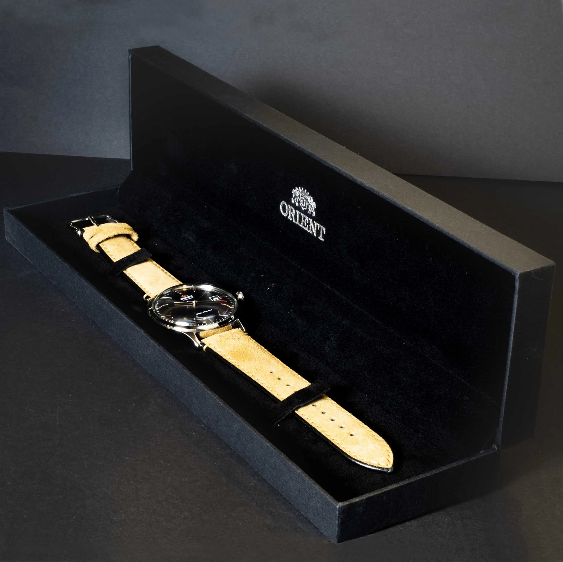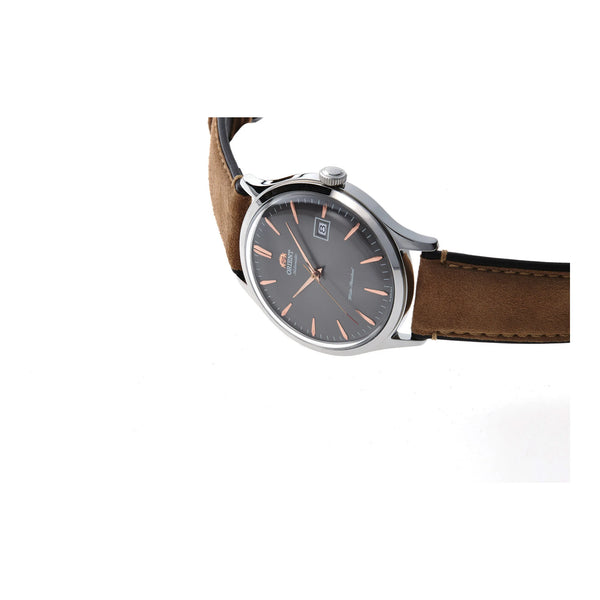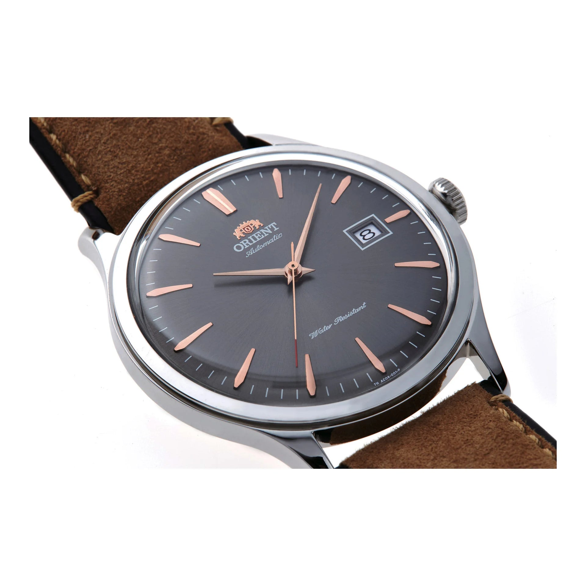 Im Bereich zeitloser Eleganz erscheint die ORIENT AC08 Bambino V4 als ein Leuchtturm der Raffinesse und Zurückhaltung. Gefertigt im Herzen horologischer Exzellenz, ist diese Uhr ein Zeugnis der Kunst der Uhrmacherei, bei der jedes Detail sorgfältig bedacht wird. Das runde Gehäuse, getaucht in einen silbergrauen Farbton, strahlt ein raffiniertes Design aus, das die Essenz des klassischen Stils einfängt. Mit einem Durchmesser von 42 mm sitzt sie bequem am Handgelenk und ist ein idealer Begleiter für den modernen Gentleman, der zurückhaltenden Luxus schätzt. Das Mineralglas schützt ein mausgraues Zifferblatt, eine Leinwand der Schlichtheit, die drei Zeiger und einen Datumsanzeiger beherbergt, angetrieben vom präzisen Kaliber F6724. Dieses mechanische Wunderwerk, verziert mit 22 Steinen, bietet sowohl Handaufzug- als auch Automatikfunktionen und gewährleistet eine nahtlose Verbindung von Tradition und Innovation. Das braune Lederband, gesichert mit einer Dornschließe, verleiht einen Hauch von Wärme und Komfort und ergänzt perfekt das legere, aber dennoch anspruchsvolle Auftreten der Uhr. Wasserbeständig und für den täglichen Gebrauch konzipiert, ist diese ORIENT Classic Uhr mehr als nur ein Accessoire, sie ist ein Statement von Stil und Präzision, ein Spiegelbild der Wertschätzung des Trägers für die schönen Dinge des Lebens.