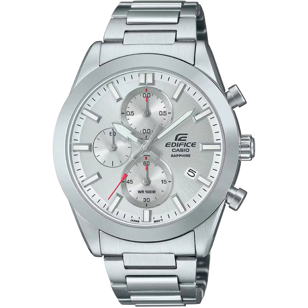 Im Bereich der Zeitmessung, wo Präzision auf Eleganz trifft, entsteht ein Meisterwerk, das den Geist moderner Raffinesse verkörpert. Mit akribischer Liebe zum Detail gefertigt, ist diese Casio Edifice Uhr ein Zeugnis der Kunst der Horologie. Ihr rundes Gehäuse, getaucht in einen eleganten silbergrauen Farbton, strahlt ein raffiniertes Design aus, das das Wesen des zeitgenössischen Stils einfängt. Mit einem Gehäusedurchmesser von 41 mm findet sie die perfekte Balance zwischen Präsenz und Zurückhaltung und ist somit ein idealer Begleiter für den anspruchsvollen Gentleman. Das Saphirglas, bekannt für seine Haltbarkeit und Klarheit, schützt das filigrane Chronographen-Display und sorgt dafür, dass jede Sekunde mit unvergleichlicher Genauigkeit erfasst wird. Das silbergraue Edelstahlarmband, gesichert mit einer Faltschließe mit Druckknopf und Sicherheitsverschluss, bietet sowohl Komfort als auch Sicherheit und ist für jeden Anlass geeignet. Bis zu 100 Meter wasserdicht, ist diese Uhr so vielseitig wie elegant und begleitet Sie vom Konferenzraum bis zum Strand. Die Pull & Push-Krone verleiht einen Hauch klassischen Charmes, während die Datumsanzeige dafür sorgt, dass Sie Ihren Zeitplan stets im Griff haben. Angetrieben von einem präzisen Quarzwerk, ist diese Uhr eine Feier von Form und Funktion. Die Chronographenfunktion, nahtlos in das Design integriert, fügt eine Ebene von Raffinesse hinzu und ermöglicht es Ihnen, die Zeit präzise zu messen. In einer Welt, in der Stil und Funktionalität oft aufeinandertreffen, steht diese Casio Edifice Uhr als Leuchtturm der Harmonie, ein wahrer Spiegel des modernen Lebensstils des Mannes.