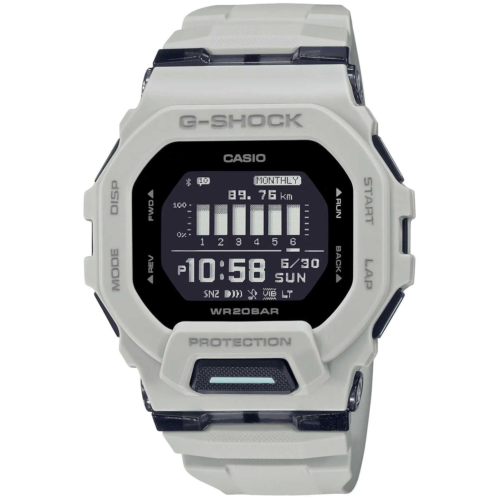 Im Bereich der Zeitmessung, wo Präzision auf Abenteuer trifft, entsteht eine Uhr, die den Geist der Erkundung und Widerstandsfähigkeit verkörpert. Gefertigt im Herzen der Innovation, ist diese Casio G-Shock Uhr ein Zeugnis für die Verschmelzung von Technologie und Stil, entworfen für den modernen Mann, der Herausforderungen liebt. Ihr quadratisches Gehäuse, getaucht in einen makellosen weißen Farbton, strahlt eine Aura von raffinierter Eleganz aus, während der robuste Durchmesser von 46 mm eine eindrucksvolle Präsenz am Handgelenk sicherstellt. Für die Tiefen konstruiert, bietet sie eine Taucher-Wasserbeständigkeit von 200 Metern, was sie zum idealen Begleiter für aquatische Abenteuer macht. Das Mineralglas schützt ein digitales Display, das ebenso funktional wie auffällig ist, vor einem kräftigen schwarzen Zifferblatt, das den sportlichen Charakter der Uhr unterstreicht. Das Resin-Armband, ebenfalls in Weiß, ergänzt das Gehäuse und bietet sowohl Haltbarkeit als auch Komfort, gesichert mit einer Dornschließe für einen sicheren Sitz. Diese Uhr dient nicht nur der Zeitmessung, sondern der Beherrschung der Zeit. Mit Funktionen wie Chronograph, Alarm, Timer und Weltzeit erfüllt sie die Anforderungen eines dynamischen Lebensstils. Die Integration eines Schrittzählers und Kalorienverbrauchs-Trackers fügt eine Fitnessfunktion hinzu, während die Gangreserveanzeige sicherstellt, dass Sie immer vorbereitet sind. Ob beim Navigieren durch Zeitzonen oder beim Erleuchten des Weges mit ihrer Lichtfunktion, diese Casio G-Shock ist ein Leuchtturm der Innovation. Ihre digitale Leistungsfähigkeit wird durch ihre ästhetische Anziehungskraft ergänzt und macht sie zu einem Statement-Stück für diejenigen, die das Gewöhnliche herausfordern.