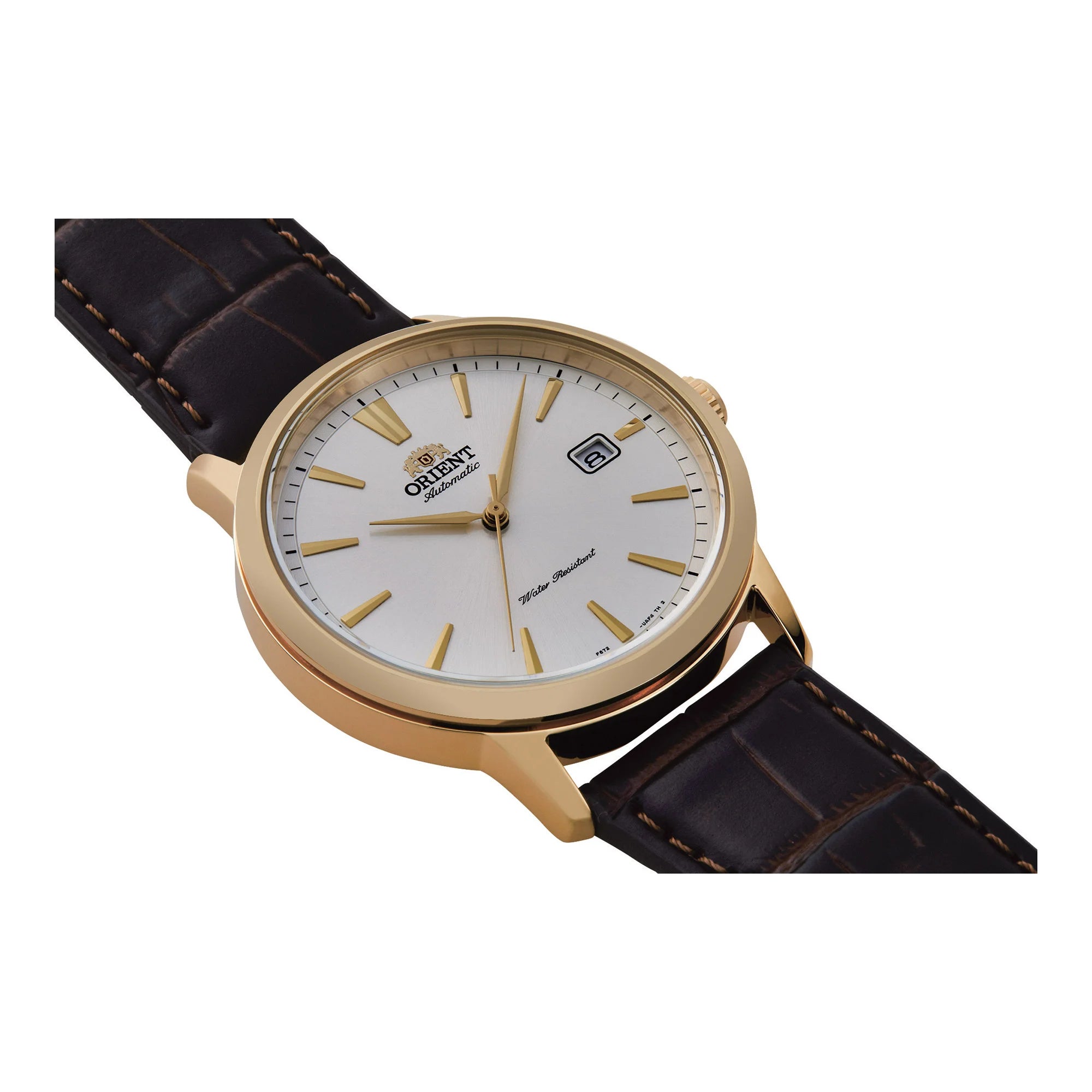 Im Bereich der Zeitmesser, wo Eleganz auf Funktionalität trifft, erscheint die ORIENT AC0F Symphony III als ein Leuchtturm der Raffinesse. Gefertigt im Herzen horologischer Exzellenz, ist diese Uhr ein Zeugnis der Kunst der Uhrmacherei. Ihr rundes Gehäuse, getaucht in einen luxuriösen Gelbgoldton, strahlt einen zeitlosen Charme aus, der das Auge fesselt. Mit einem Gehäusedurchmesser von 41 mm findet sie die perfekte Balance zwischen Präsenz und Zurückhaltung und ist somit ein idealer Begleiter für den modernen Gentleman. Das hellgraue Zifferblatt, geschmückt mit drei Zeigern und einem Datumsanzeiger, bietet einen ruhigen Hintergrund, der das raffinierte Design der Uhr ergänzt. Eingefasst in Mineralglas verspricht es Haltbarkeit und bewahrt gleichzeitig den klaren Blick auf die filigranen Details im Inneren. Der transparente Boden offenbart das mechanische Wunderwerk des Kalibers F6722, das 22 Steine und eine tägliche Genauigkeit von +25/-15 Sekunden aufweist. Dieses Meisterwerk ist sowohl handaufgezogen als auch automatisch und gewährleistet Präzision und Zuverlässigkeit. Das Edelstahlarmband in einem eleganten Silbergrau schmiegt sich bequem ums Handgelenk und wird durch eine Dornschließe gesichert. Mit einer Wasserdichtigkeit von bis zu 50 Metern ist sie ebenso vielseitig wie elegant und bereit, Sie von legeren Ausflügen bis zu formelleren Anlässen zu begleiten. Die ORIENT AC0F Symphony III ist nicht nur eine Uhr, sie ist ein Stil-Statement und ein Zeugnis der beständigen Anziehungskraft klassischen Designs.