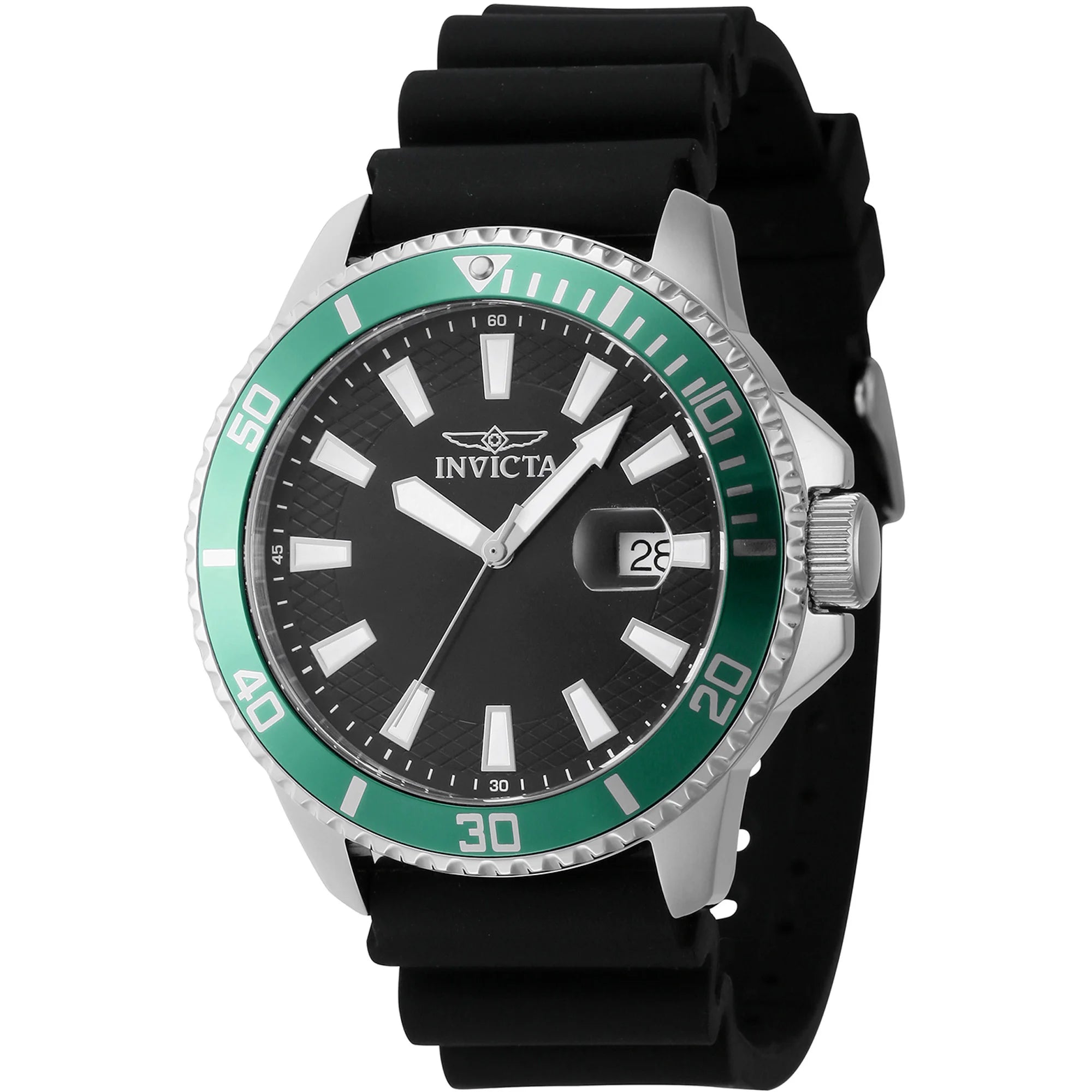 Im Bereich der Zeitmesser, wo Präzision auf Stil trifft, entsteht eine Kreation, die sowohl Eleganz als auch Funktionalität verkörpert. Gefertigt im Herzen horologischer Expertise, ist die Invicta Pro Diver ein Zeugnis für raffiniertes Design und legere Raffinesse. Ihr rundes Gehäuse, getaucht in einen eleganten silbergrauen Farbton, zieht mit einem markanten Durchmesser von 45 mm alle Blicke auf sich und setzt ein mutiges Statement an jedem Handgelenk. Das schwarze Silikonarmband der Uhr, gesichert mit einer Dornschließe, bietet einen bequemen und zugleich sicheren Sitz, perfekt für den modernen Mann, der sowohl Stil als auch Praktikabilität schätzt. Unter dem widerstandsfähigen Hardlex-Glas liegt ein schwarzes Zifferblatt, eine Leinwand zurückhaltender Eleganz, auf der drei Zeiger anmutig tanzen, angetrieben vom zuverlässigen Quartz-Uhrwerk. Das Kaliber VJ42 sorgt für Präzision, während der Datumsanzeiger diesem Meisterwerk einen Hauch von Praktikabilität verleiht. Mit einer Wasserdichtigkeit von bis zu 50 Metern ist diese Uhr nicht nur ein Accessoire, sondern ein Begleiter für die Abenteuer des Lebens, sei es an Land oder auf See. Die Invicta Pro Diver ist mehr als eine Uhr, sie ist ein Statement zeitlosen Stils und beständiger Qualität, entworfen für diejenigen, die die schönen Dinge des Lebens zu schätzen wissen.