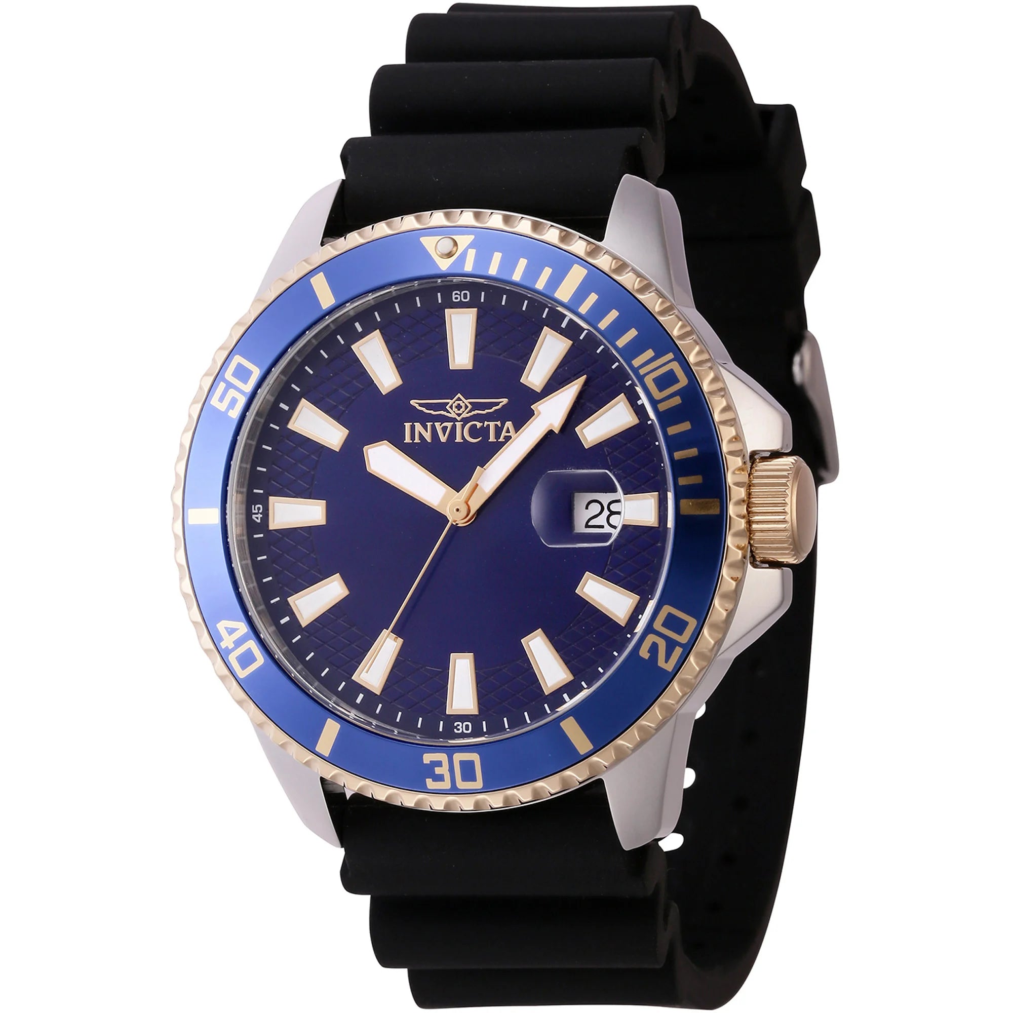 Die Invicta Pro Diver besticht durch ihr silbergraues rundes Gehäuse und das auffällige blaue Zifferblatt. Ein Durchmesser von 45 mm und Hardlex-Glas bieten Haltbarkeit, während das schwarze Silikonarmband Komfort gewährleistet. Wasserdicht bis 50 Meter ist diese Uhr perfekt für den modernen Mann, der legere Eleganz sucht.