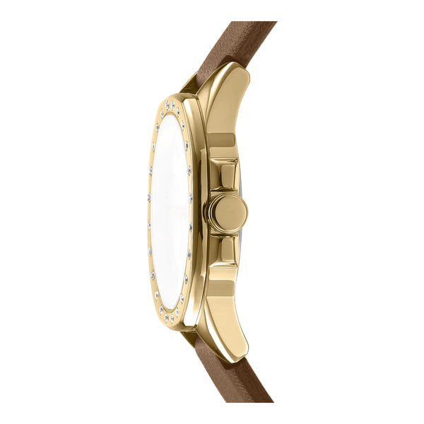 Im pulsierenden Herzen von New York, wo Mode auf den schnellen Rhythmus des Lebens trifft, entsteht eine Uhr, die den Geist der Stadt selbst verkörpert. Die DKNY DK1L013 Brooklyn Mini ist ein Zeugnis für die Eleganz und Raffinesse, die die moderne Frau auszeichnet. Mit ihrem markanten achteckigen Gehäuse, getaucht in den warmen Glanz von Gelbgold, fängt diese Uhr das Wesen des urbanen Chics ein. Der Durchmesser von 30 mm findet die perfekte Balance zwischen Zurückhaltung und Statement und macht sie zu einem idealen Accessoire für jeden Anlass. Mit einem raffinierten Design gefertigt, bietet sie eine Wasserdichtigkeit von bis zu 50 Metern und stellt sicher, dass sie den Anforderungen des Alltags standhält. Das Mineralglas schützt ein silbergraues Zifferblatt, auf dem drei Zeiger anmutig tanzen, angetrieben von präzisem Quarzwerk. Die Pull & Push-Krone fügt einen Hauch von Praktikabilität hinzu, während das braune Lederarmband, gesichert mit einer Dornschließe, sich bequem um das Handgelenk legt und einen Sinn für zeitlosen Stil ausstrahlt. Diese DKNY-Uhr ist mehr als nur ein Zeitmesser, sie ist ein Spiegelbild der lebendigen Energie und Eleganz, die die modebewusste Frau definiert.