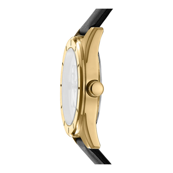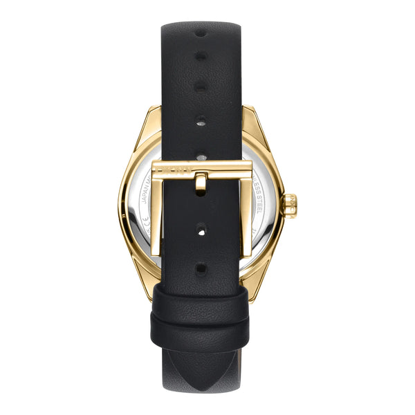 Im Herzen urbaner Eleganz, wo Mode auf Funktion trifft, entsteht eine Uhr, die den Geist moderner Raffinesse verkörpert. Die DKNY Chambers Midi Uhr, mit ihrem exquisiten runden Gehäuse in einem luxuriösen Gelbgoldton, fängt die Essenz zeitlosen Stils ein. Entworfen für die zeitgenössische Frau, die sowohl Form als auch Funktion schätzt, ist diese Uhr ein Zeugnis für raffiniertes Design. Ihr 34-mm-Gehäusedurchmesser bietet eine perfekte Balance zwischen Zurückhaltung und Statement und macht sie zu einem idealen Accessoire für jeden Anlass. Das schwarze Lederarmband, gesichert mit einer klassischen Dornschließe, ergänzt das schlanke schwarze Zifferblatt der Uhr und schafft einen auffälligen Kontrast, der Selbstbewusstsein und Anziehungskraft ausstrahlt. Unter dem Mineralglas wird die Drei-Zeiger-Anzeige des Zifferblatts von einem präzisen Quarzwerk angetrieben, das sicherstellt, dass die Zeit immer auf Ihrer Seite ist. Mit einer Wasserdichtigkeit von bis zu 50 Metern ist diese Uhr ebenso vielseitig wie stilvoll und bereit, Sie von den belebten Straßen der Stadt bis zu ruhigen Uferrefugien zu begleiten. Die Pull-&-Push-Krone fügt einen Hauch von Praktikabilität hinzu und ermöglicht einfache Anpassungen, während die nahtlose Ästhetik der Uhr erhalten bleibt. Für diejenigen gefertigt, die es wagen, Mode mit Funktionalität zu verbinden, ist die DKNY Chambers Midi Uhr mehr als nur ein Zeitmesser, sie ist ein Statement von Individualität und Anmut, ein Spiegelbild des einzigartigen Stils und des unerschütterlichen Selbstbewusstseins der Trägerin.