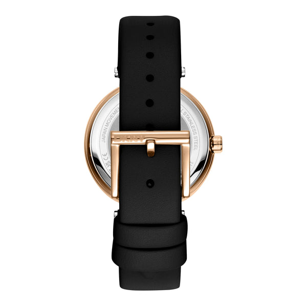 Strahlen Sie Eleganz mit der DKNY Downtown Multi in Roségold aus. Das 38-mm-Gehäuse und das schwarze Lederarmband schaffen einen zeitlosen Look. Das silbergraue Zifferblatt und die Dornschließe bieten Raffinesse, während die 50 m Wasserdichtigkeit dafür sorgt, dass sie ebenso praktisch wie schön ist.
