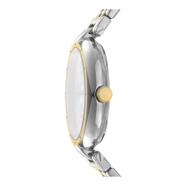 Im pulsierenden Herzen der Stadt, wo Mode auf Funktion trifft, erscheint die DKNY DK1L066 Downtown Multi Uhr als Symbol urbaner Eleganz. Präzise gefertigt, ist diese Uhr für die moderne Frau entworfen, die ihren Tag mit Anmut und Stil meistert. Das runde Gehäuse, getaucht in ein elegantes Silbergrau, ergänzt perfekt das Edelstahlarmband und schafft einen nahtlosen Fluss metallischer Anziehungskraft. Mit einem Gehäusedurchmesser von 38 mm findet sie die perfekte Balance zwischen Kühnheit und Zurückhaltung und ist somit ein ideales Accessoire für jeden Anlass. Das Mineralglas schützt das Zifferblatt, das den silbergrauen Farbton des Gehäuses widerspiegelt und eine monochrome Leinwand bietet, die zeitgenössischen Chic ausstrahlt. Diese Uhr ist nicht nur ästhetisch, sie verfügt über ein Multifunktionsdisplay, das von einem zuverlässigen Quarzwerk angetrieben wird und Genauigkeit sowie Verlässlichkeit garantiert. Die Integration eines Tageskalenders und einer 24-Stunden-Anzeige fügt ihrer modischen Gestaltung praktische Funktionen hinzu. Bis zu 50 Meter wasserdicht, ist sie bereit, Sie durch die Abenteuer des Lebens zu begleiten, egal ob Sie sich im urbanen Dschungel bewegen oder eine ruhige Auszeit genießen. Die Butterfly-Faltschließe mit Druckknopfverschluss sorgt für einen sicheren Sitz, während die Pull & Push-Krone eine einfache Einstellung ermöglicht. Die DKNY Downtown Multi Uhr ist mehr als nur ein Zeitmesser, sie ist ein Statement für raffiniertes Design und moderne Eleganz, geschaffen, um mit dem dynamischen Rhythmus Ihres Lebens Schritt zu halten.