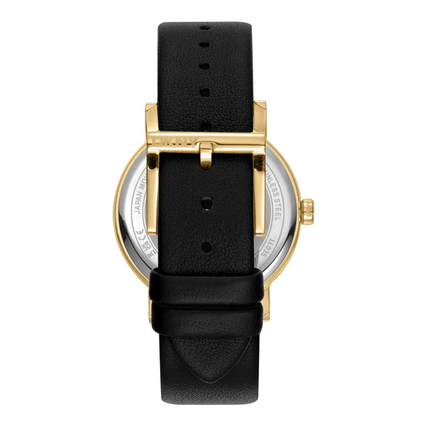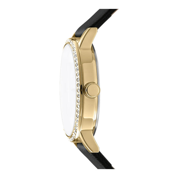 Die DKNY Soho Logo Uhr in Gelbgold ist ein Statement zeitloser Mode. Ihr 36mm rundes Gehäuse und das schwarze Lederarmband schaffen einen auffälligen Kontrast, während das silbergraue Zifferblatt einen Hauch von Raffinesse verleiht. Bis zu 50 Meter wasserdicht, ist diese Uhr perfekt für diejenigen, die sowohl Stil als auch Funktionalität schätzen, und somit ein Muss für jeden Modebegeisterten.