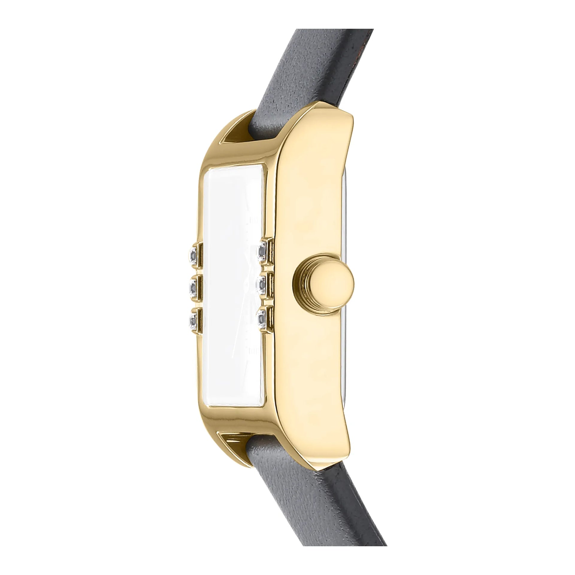 Im Herzen urbaner Eleganz, wo Mode auf Funktion trifft, entsteht eine Uhr, die den Geist moderner Raffinesse verkörpert. Die DKNY DK1L008 Westside Glitz ist ein Zeugnis der Kunst der Uhrmacherei, gefertigt mit Präzision und Stil für die zeitgenössische Frau. Ihr rechteckiges Gehäuse, getaucht in einen luxuriösen Gelbgoldton, fängt das Wesen zeitloser Glamour ein, während der schlanke Durchmesser von 22 mm eine zarte, aber auffällige Präsenz am Handgelenk gewährleistet. Das silbergraue Zifferblatt, eine Leinwand zurückhaltender Eleganz, ist mit drei Zeigern geschmückt, die mühelos gleiten, angetrieben von einem zuverlässigen Quarzwerk. Diese Uhr ist nicht nur ein Accessoire, sie ist ein Statement von raffiniertem Geschmack und urbanem Chic. Das Mineralglas bietet einen klaren Blick auf das Zifferblatt, geschützt durch eine Pull & Push-Krone, die dem Design einen Hauch von Praktikabilität verleiht. Das mausgraue Lederarmband, gesichert mit einer Dornschließe, schmiegt sich bequem um das Handgelenk und bietet einen subtilen Kontrast zum goldenen Gehäuse. Wasserresistent, ist diese Uhr bereit, Sie durch das geschäftige Treiben der Stadt zu begleiten, ohne dabei auf Stil zu verzichten. Die DKNY Westside Glitz ist mehr als eine Uhr, sie ist eine Feier des modischen Denkens, ein Stück, das mit denen in Resonanz tritt, die die feineren Dinge im Leben schätzen.