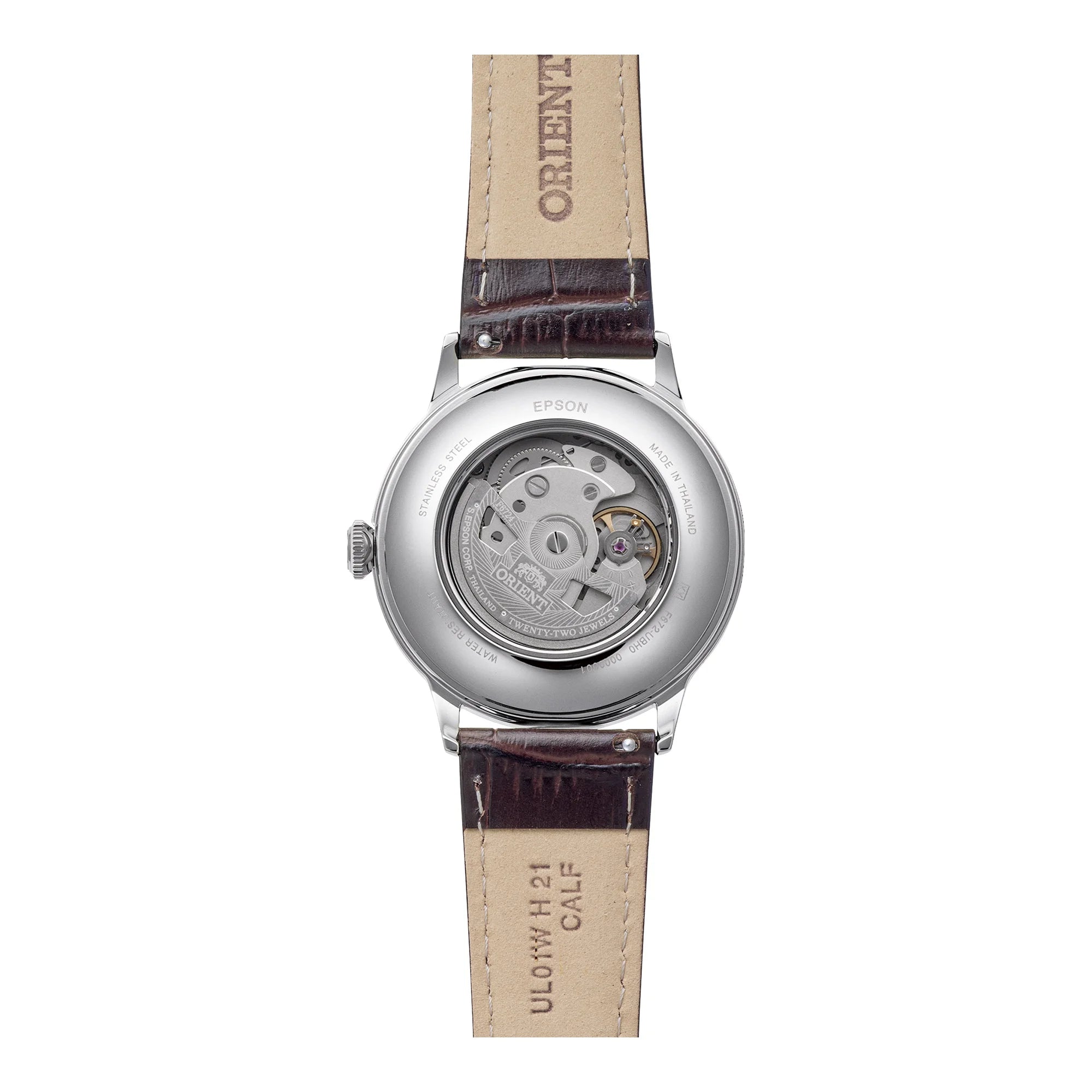 Powered by the robust in-house Orient F6724 automatic movement, this dress watch offers both self-winding and hand-winding capabilities, along with a useful hacking function for precise time setting and a date display. With 22 jewels, it promises exceptional accuracy and a daily accuracy of +25/-15 seconds. Designed for everyday wear, it is water-resistant and weighs a comfortable 60g.