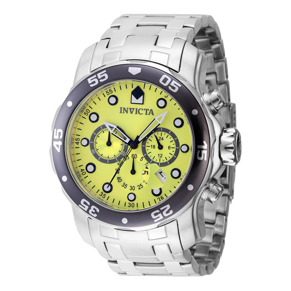 In der Welt der Zeitmesser, in der Präzision auf Eleganz trifft, erscheint die Invicta Pro Diver als ein Leuchtturm des Stils und der Funktionalität. Gefertigt im Herzen horologischer Exzellenz, ist diese Uhr ein Zeugnis für raffiniertes Design und akribische Handwerkskunst. Ihr rundes Gehäuse, getaucht in ein elegantes Silbergrau, zieht mit einem beeindruckenden Durchmesser von 48 mm alle Blicke auf sich und setzt ein mutiges Statement an jedem Handgelenk. Das Edelstahlarmband, das farblich auf das Gehäuse abgestimmt ist, umschließt das Handgelenk mit zeitloser Eleganz und wird durch eine Faltschließe mit Sicherheitsverschluss für zusätzliche Sicherheit gehalten. Unter dem Hardlex-Glas strahlt das lebendige gelbe Zifferblatt mit einem Farbtupfer, der dem lässigen Stil ein verspieltes und zugleich gewagtes Element verleiht. Diese Chronograph-Uhr, angetrieben von einem präzisen Quarzwerk, zeigt nicht nur die Zeit an, sondern bietet auch einen Kalender, der dafür sorgt, dass Sie mit Stil im Zeitplan bleiben. Mit einer Wasserdichtigkeit von bis zu 200 Metern ist sie ein vertrauenswürdiger Begleiter für diejenigen, die es wagen, die Tiefen zu erkunden. Die Zug- und Druckkrone verleiht einen Hauch klassischen Charmes und ermöglicht einfache Einstellungen. Die Invicta Pro Diver ist mehr als nur eine Uhr, sie ist ein Statement von Selbstbewusstsein und Raffinesse, entworfen für den modernen Mann, der sowohl Form als auch Funktion schätzt.