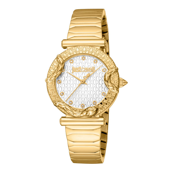 In der Welt der Mode, in der Eleganz auf Kühnheit trifft, entsteht eine Uhr, die das Wesen von Raffinesse und Stil einfängt. Gefertigt im Herzen der Schweizer Uhrmacherkunst, ist diese Just Cavalli Uhr aus der Animalier Kollektion ein Zeugnis für das Engagement der Marke für mutiges Design und exquisite Handwerkskunst. Das runde Gehäuse, getaucht in einen luxuriösen Gelbgoldton, strahlt ein Gefühl von Opulenz und Großartigkeit aus und ergänzt perfekt das raffinierte Design der Uhr. Mit einem Gehäusedurchmesser von 32 mm sitzt sie anmutig am Handgelenk und ist ein ideales Accessoire für die moderne Frau, die sowohl Mode als auch Funktion schätzt. Das Edelstahlarmband, ebenfalls in einem passenden Gelbgoldton, verleiht einen Hauch zeitloser Eleganz und ist mit einer Butterfly-Faltschließe mit Druckknopf für Komfort und einfache Handhabung gesichert. Das silbergraue Zifferblatt, eine Leinwand subtiler Raffinesse, ist mit drei Zeigern versehen, die von einem präzisen Quarzwerk angetrieben werden und eine genaue Zeitmessung gewährleisten. Bis zu 50 Meter wasserdicht, ist diese Uhr ebenso praktisch wie stilvoll und bereit, Sie durch die Abenteuer des Lebens zu begleiten. Das Mineralglas fügt eine Schicht Haltbarkeit hinzu, schützt das Zifferblatt und bewahrt gleichzeitig die Klarheit. Diese Just Cavalli Uhr ist nicht nur eine Uhr, sondern ein Statement von Charakter und Kühnheit, ein Spiegelbild des einzigartigen Stils und Selbstbewusstseins der Trägerin.