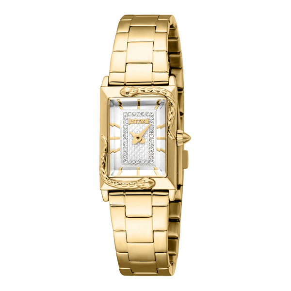 Im Bereich der Mode, wo Eleganz auf Kühnheit trifft, entsteht eine Uhr, die das Wesen kühner Raffinesse einfängt. Gefertigt im Herzen des Stils, ist diese Just Cavalli Uhr aus der illustren Animalier Kollektion ein Zeugnis des wagemutigen Geistes der Marke. Das rechteckige Gehäuse, getaucht in einen luxuriösen Gelbgoldton, strahlt ein Gefühl von Opulenz und Großartigkeit aus und ergänzt das raffinierte Design perfekt. Mit einem Gehäusedurchmesser von 20 mm sitzt sie anmutig am Handgelenk, eine subtile, aber auffällige Aussage für modebewusstes Denken. Das Edelstahlarmband, ebenfalls in Gelbgold, umschließt das Handgelenk mit nahtloser Eleganz und wird durch eine Faltschließe mit Druckknopf für Komfort und Leichtigkeit gesichert. Das silbergraue Zifferblatt, eine Leinwand minimalistischer Schönheit, ist mit zwei Zeigern versehen, die von einem präzisen Quarzwerk angetrieben werden und sicherstellen, dass die Zeit immer auf Ihrer Seite ist. Wasserfest und durch ein Mineralglas geschützt, ist diese Uhr ebenso praktisch wie stilvoll. Das Modell Dolcezza Snake mit seiner Zug- und Drückkrone verkörpert den kühnen Charakter der Just Cavalli Marke und ist das perfekte Accessoire für die moderne Frau, die es wagt, aufzufallen. Diese Uhr ist nicht nur ein Zeitmesser, sondern eine mutige Aussage von Individualität und Stil, ein Stück, das mit der lebendigen Energie derjenigen mitschwingt, die sie tragen.