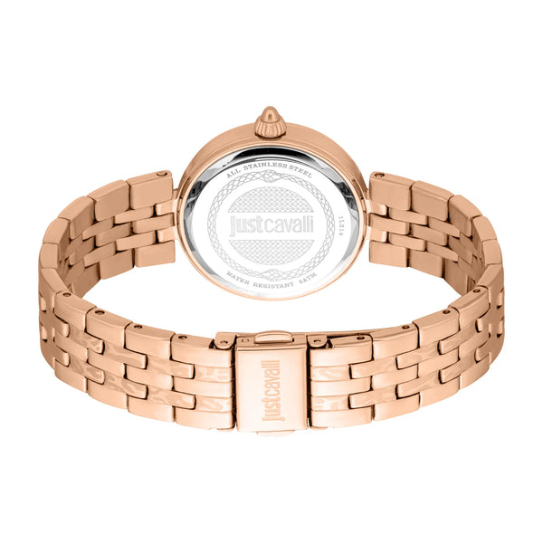 Im Bereich der Mode, wo Eleganz auf Kühnheit trifft, entsteht eine Uhr, die das Wesen von Raffinesse und Mut einfängt. Gefertigt im Herzen der Schweizer Uhrmacherkunst, ist diese Just Cavalli Watch aus der Animalier Kollektion ein Zeugnis für verfeinertes Design und exquisiten Geschmack. Das runde Gehäuse, getaucht in einen luxuriösen Roségoldton, umschließt ein Zifferblatt in Olivgrün – eine Farbe, die von der Ruhe der Natur flüstert und gleichzeitig einen Hauch zeitgenössischer Eleganz ausstrahlt. Mit einem Gehäusedurchmesser von 30 mm sitzt sie anmutig am Handgelenk, ein perfekter Begleiter für die moderne Frau, die sowohl Stil als auch Substanz schätzt. Das Mineralglas schützt das Zifferblatt und sorgt für Klarheit und Schutz, während die Pull & Push Krone eine einfache Einstellung ermöglicht. Das Edelstahlarmband, ebenfalls in Roségold, schmiegt sich mit einer Butterfly-Faltschließe um das Handgelenk und bietet sowohl Sicherheit als auch Eleganz. Bis zu 50 Meter wasserdicht, ist diese Uhr so vielseitig wie schön und bereit, Sie vom Konferenzraum bis zum Abendessen zu begleiten. Angetrieben von einem präzisen Quarzwerk, zeigt die Drei-Zeiger-Anzeige die Zeit mit unerschütterlicher Genauigkeit an. Diese Just Cavalli Watch ist nicht nur ein Accessoire, sondern ein Statement von Individualität und Anmut, ein Spiegelbild des einzigartigen Stils und Selbstbewusstseins der Trägerin.