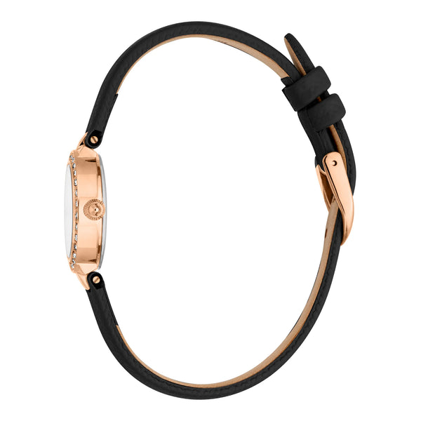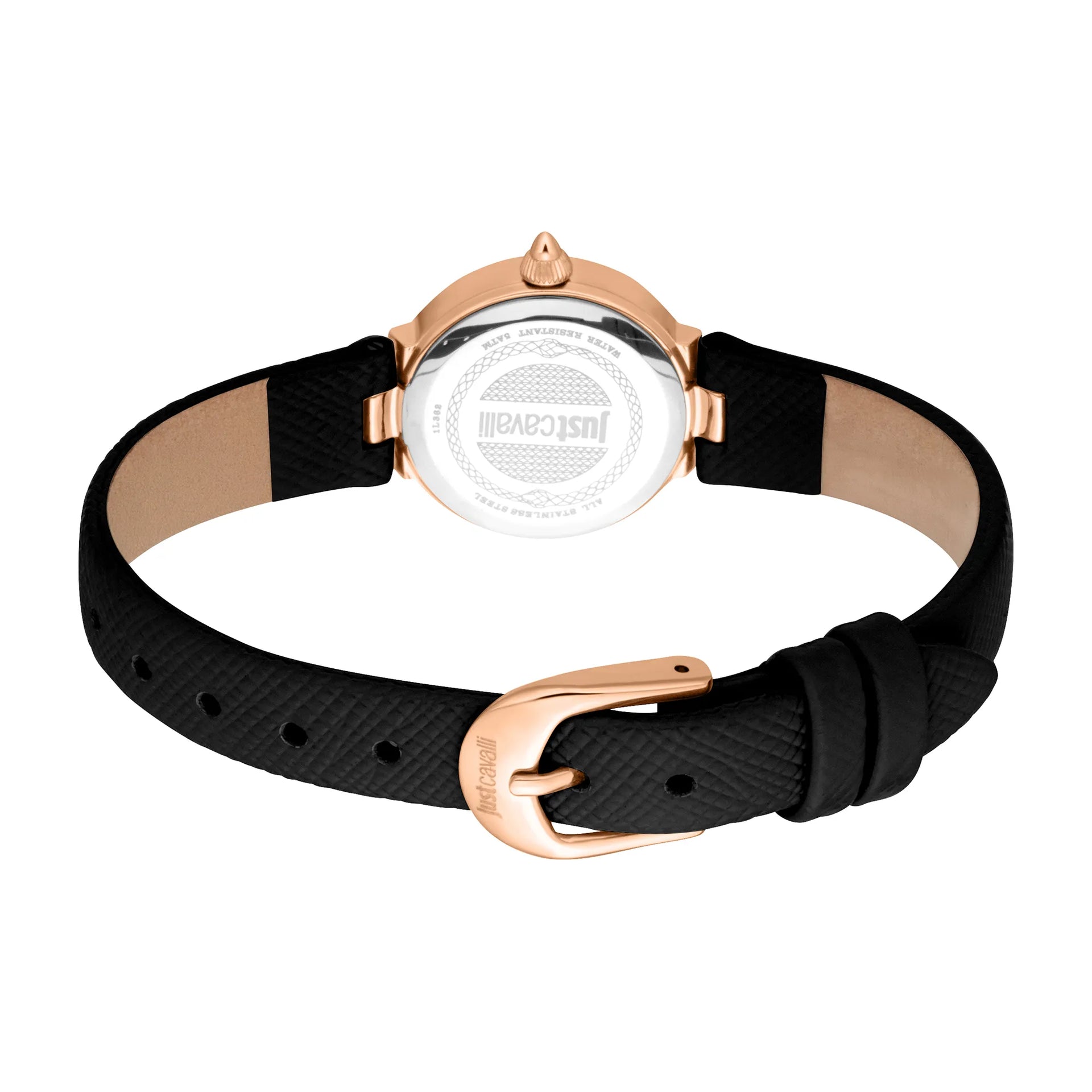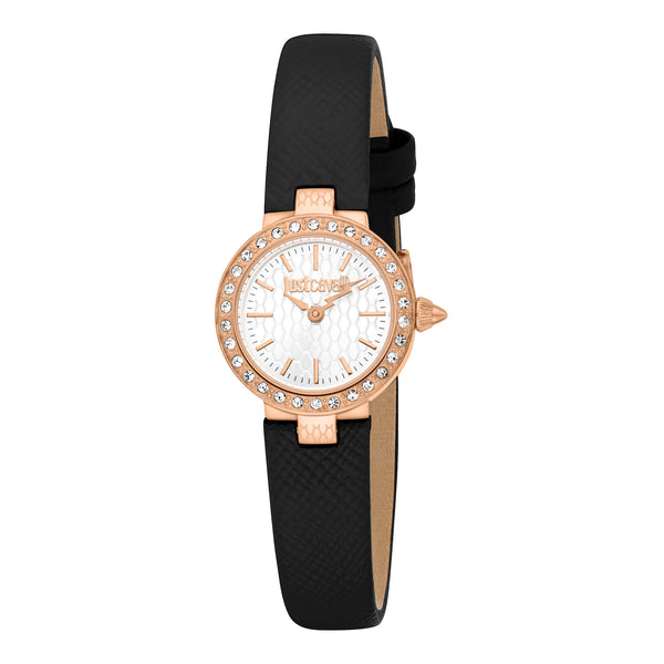Erleben Sie den Reiz der Just Cavalli Serenita Mini, wo Roségold auf zeitlose Eleganz trifft. Das 23mm Gehäuse und das silbergraue Zifferblatt werden von einem schwarzen Lederarmband ergänzt und schaffen so einen anspruchsvollen Look. Wasserfest und für die moderne Frau gefertigt, ist es ein Symbol für schicken Stil.