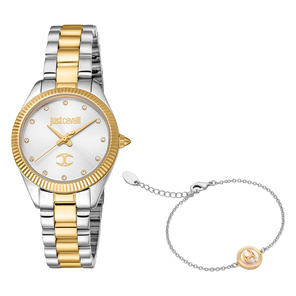 In der Welt der Mode, wo Eleganz auf Kühnheit trifft, entsteht eine Uhr, die das Wesen von Raffinesse und Stil einfängt. Diese Just Cavalli Uhr, gefertigt im Herzen des italienischen Designs, ist ein Zeugnis für das Engagement der Marke für Luxus und Innovation. Mit ihrem runden Gehäuse, das in strahlendem Gelbgold plattiert ist, strahlt sie eine Wärme und Opulenz aus, die sowohl zeitlos als auch zeitgemäß ist. Der Durchmesser von 30 mm findet die perfekte Balance zwischen Zurückhaltung und Präsenz und macht sie zu einem idealen Accessoire für die moderne Frau, die sowohl Anmut als auch Kühnheit schätzt. Das Edelstahlarmband, ebenfalls in Gelbgold, ergänzt das Gehäuse mit einem nahtlosen Fluss, gesichert durch eine Butterfly-Faltschließe mit Druckknopf für Komfort und Sicherheit. Das silbergraue Zifferblatt, zurückhaltend und doch auffällig, bietet einen raffinierten Hintergrund für das Drei-Zeiger-Quarzwerk, das Präzision und Zuverlässigkeit gewährleistet. Bis zu 50 Meter wasserdicht, ist diese Uhr ebenso praktisch wie schön und bereit, Sie durch die Abenteuer des Lebens zu begleiten. Das Mineralglas fügt eine Schicht Haltbarkeit hinzu, schützt das Zifferblatt und bewahrt dabei Klarheit und Eleganz. Diese Just Cavalli Uhr ist nicht nur eine Uhr, sondern ein Stil-Statement, ein Spiegelbild eines mutigen Geistes und eine Feier der Kunst der Uhrmacherei.