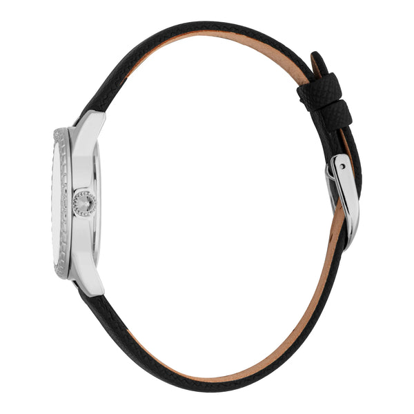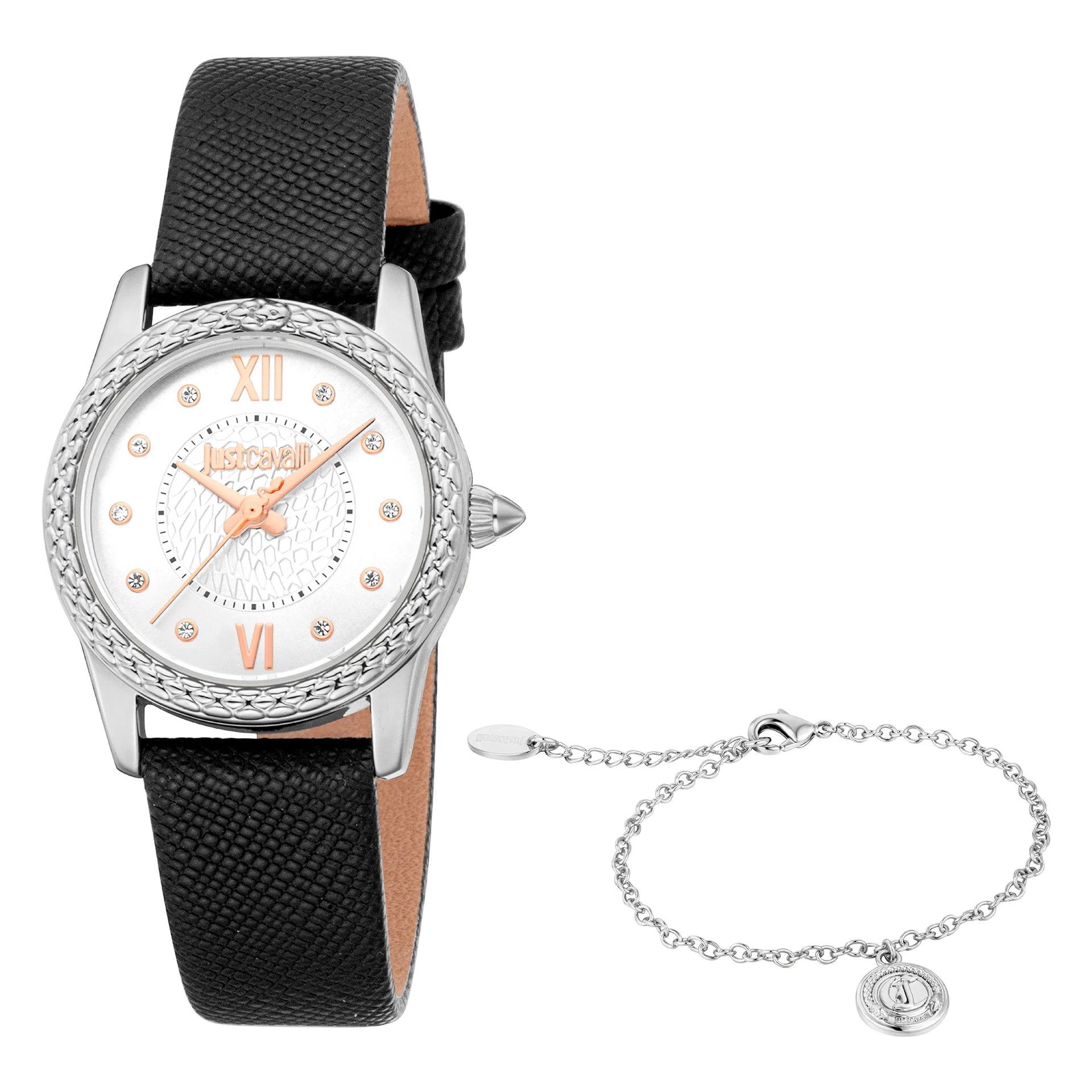 Im Bereich der Mode, wo Eleganz auf Kühnheit trifft, entsteht eine Uhr, die das Wesen moderner Raffinesse einfängt. Diese Just Cavalli Uhr aus der JC1L360 Sublime Animalier Kollektion ist ein Zeugnis für das Gespür der Marke, Stil mit Funktionalität zu verbinden. Mit einem raffinierten Design gefertigt, strahlt ihr rundes Gehäuse, getaucht in einen eleganten silbergrauen Farbton, einen zeitlosen Charme aus, der sowohl subtil als auch auffällig ist. Der Durchmesser von 30 mm ist perfekt auf das feminine Handgelenk abgestimmt und bietet eine zarte, aber dennoch mutige Aussage. Das Mineralglas schützt ein Zifferblatt, das die silbergraue Eleganz des Gehäuses widerspiegelt und eine harmonische visuelle Symphonie schafft. Das Herz der Uhr schlägt mit der Präzision eines Quarzwerks und sorgt dafür, dass die Zeit mit unerschütterlicher Genauigkeit gehalten wird. Eine Pull & Push-Krone fügt einen Hauch von Praktikabilität hinzu, während die wasserfeste Eigenschaft dem abenteuerlustigen Geist Sicherheit bietet. Das schwarze Lederarmband, gesichert mit einer Dornschließe, umschließt das Handgelenk mit Komfort und Stil, sein dunkler Ton bietet einen auffälligen Kontrast zum leuchtenden Zifferblatt der Uhr. Diese Just Cavalli Uhr ist nicht nur ein Accessoire, sondern eine Erklärung für modebewusstes Denken, ein Stück, das es wagt, in einer Welt der Konformität herauszustechen. Bei jedem Blick auf ihr Zifferblatt wird man an die Kühnheit erinnert, die in ihr liegt, ein perfekter Begleiter für diejenigen, die das Leben mit Selbstvertrauen und Anmut meistern.