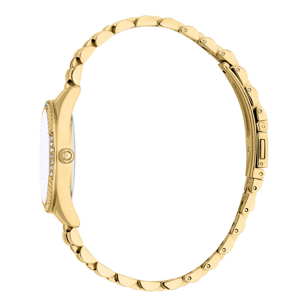 In der Welt der Mode, wo Eleganz auf Kühnheit trifft, entsteht eine Uhr, die das Wesen von Raffinesse und Stil einfängt. Gefertigt im Herzen des italienischen Designs, ist diese Just Cavalli Watch, die JC1L361 Vittoria Glam, ein Zeugnis für das Engagement der Marke für Luxus und Flair. Ihr rundes Gehäuse, getaucht in einen leuchtenden Gelbgoldton, strahlt eine zeitlose Anziehungskraft aus und ergänzt perfekt das raffinierte Design, das dieses exquisite Accessoire definiert. Der Durchmesser von 32 mm schafft eine harmonische Balance zwischen Zurückhaltung und Aussagekraft und macht sie zum idealen Begleiter für die moderne Frau, die sowohl Anmut als auch Präsenz schätzt. Das antike weiße Zifferblatt, eine Leinwand zurückhaltender Schönheit, ist mit drei Zeigern versehen, die von einem präzisen Quarzuhrwerk angetrieben werden und sicherstellen, dass die Zeit immer auf Ihrer Seite ist. Eingefasst in Mineralglas bietet die Uhr einen klaren Blick auf ihr elegantes Gesicht, während die Pull & Push-Krone dem anspruchsvollen Design einen Hauch von Praktikabilität verleiht. Das Edelstahlarmband, ebenfalls in Gelbgold, umschließt das Handgelenk mit einem Gefühl von Luxus und wird durch eine Faltschließe mit Druckknopf für Komfort und Leichtigkeit gesichert. Wasserbeständig ist diese Uhr ebenso vielseitig wie schön und bereit, Sie durch die Abenteuer des Lebens zu begleiten. Mit ihrem modischen Stil ist diese Just Cavalli Watch nicht nur ein Accessoire, sondern ein Statement von Individualität und Eleganz, ein Stück, das das Herz derjenigen anspricht, die es wagen, aufzufallen.