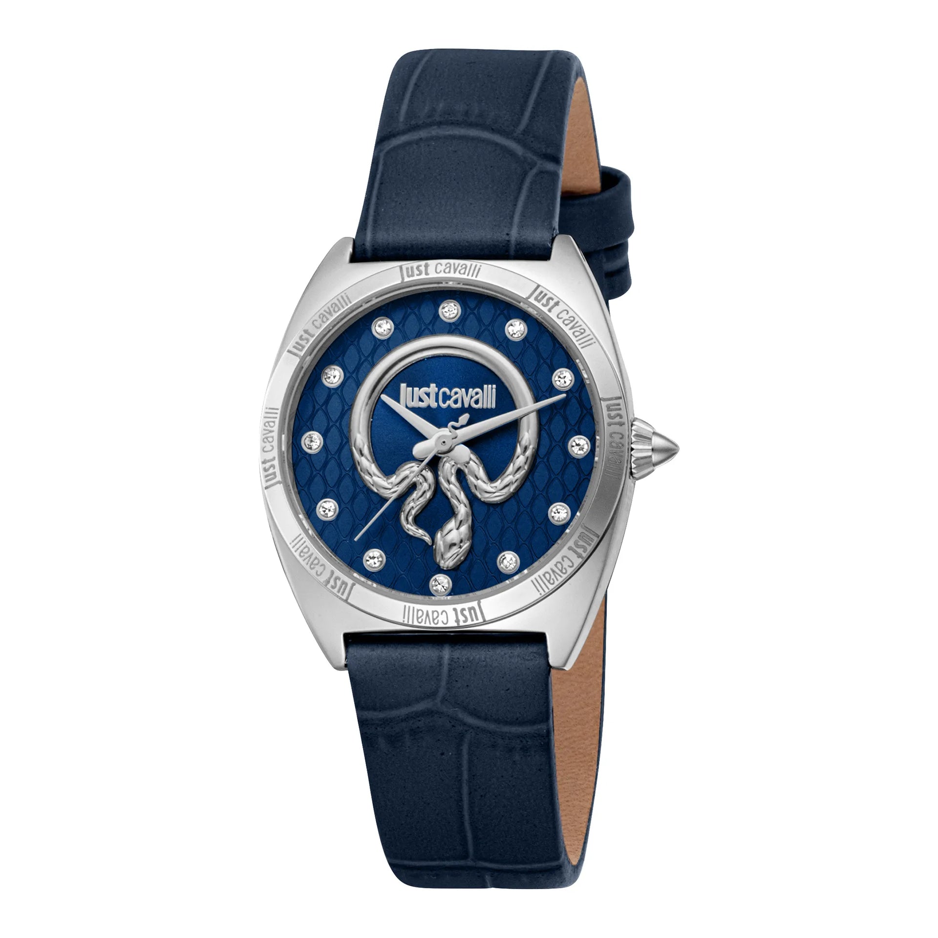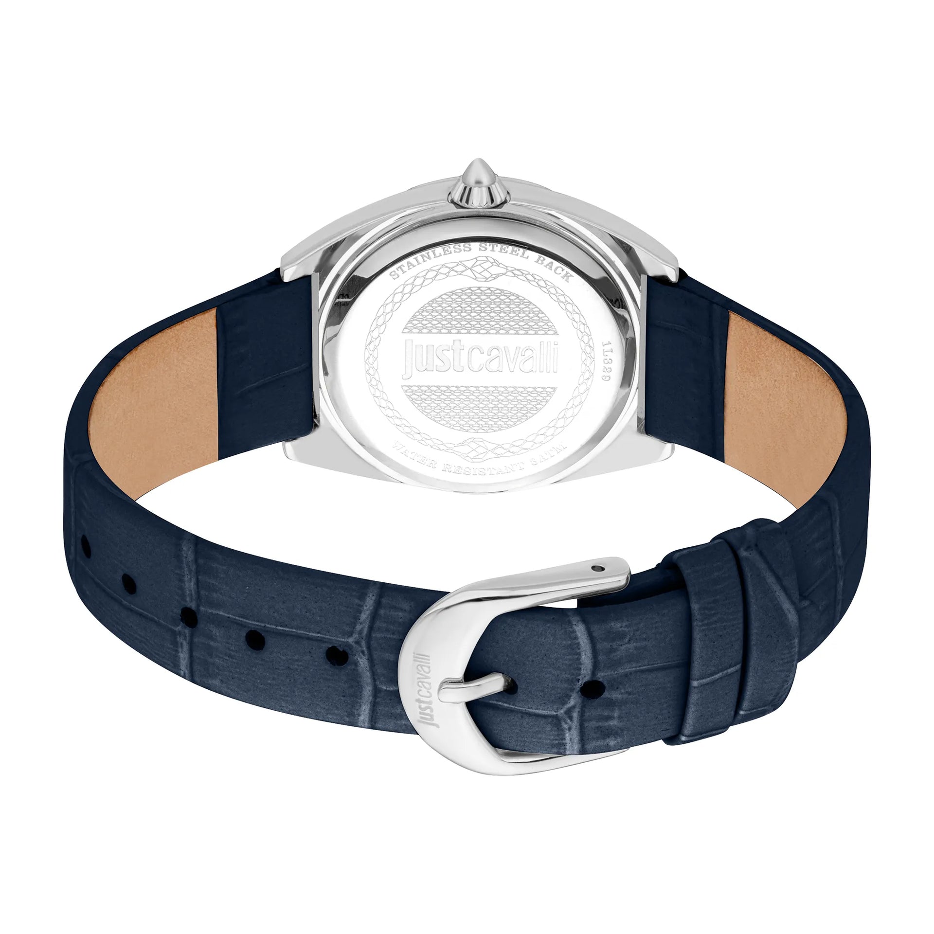Im Bereich der Mode, wo Eleganz auf Kühnheit trifft, entsteht eine Uhr, die das Wesen von Raffinesse und Stil einfängt. Präzise gefertigt, ist diese Just Cavalli Watch ein Zeugnis für verfeinertes Design und exquisite Handwerkskunst. Ihr rundes Gehäuse, getaucht in ein glänzendes Silbergrau, strahlt eine zeitlose Anziehungskraft aus und ergänzt perfekt das nachtblau Lederarmband, das sich anmutig um das Handgelenk schlingt. Die harmonische Farbkombination schafft einen auffälligen Kontrast und macht sie zu einem Statement-Stück für die moderne Frau, die es wagt, aufzufallen. Das nachtblaue Zifferblatt, eine Leinwand tiefer Eleganz, ist mit zarten Markierungen geschmückt, die unter dem Mineralglas tanzen und einen Einblick in die Welt der präzisen Zeitmessung bieten. Mit einem Gehäusedurchmesser von 30 mm ist diese Uhr eine perfekte Balance zwischen Zurückhaltung und Präsenz, während der Dornschließenverschluss einen sicheren und bequemen Sitz gewährleistet. Wasserbeständig und angetrieben von einem zuverlässigen Quarzwerk, verspricht sie sowohl Funktionalität als auch Stil. Die Pull & Push-Krone verleiht einen Hauch klassischen Charmes und lädt dazu ein, die Kunst der Zeit zu erkunden. Diese Just Cavalli Watch ist nicht nur ein Accessoire, sondern eine Feier der Mode und Weiblichkeit, ein Stück, das mit jedem Ticken Geschichten von Eleganz und Kühnheit flüstert.