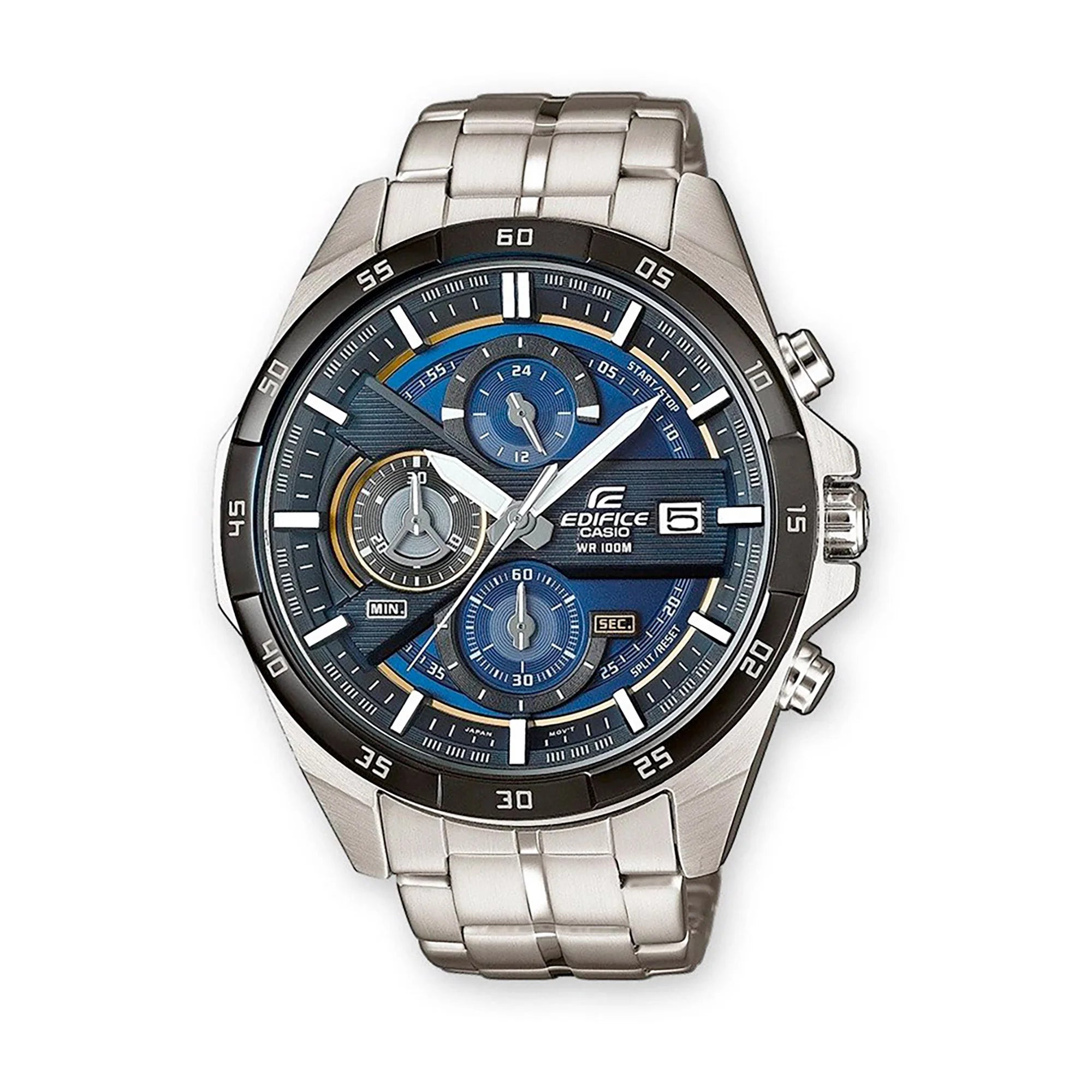 Umarmen Sie Ihren dynamischen Geist. Die CASIO Edifice für Herren ist nicht nur eine lässige Uhr, sondern ein Ausdruck unvergleichlicher Selbstsicherheit. Ihr auffälliges blaues Zifferblatt zieht sofort alle Blicke auf sich, ein Symbol für Ihren mutigen Ehrgeiz und scharfe Präzision. Für diejenigen gefertigt, die jeden Moment erobern, bietet sie sowohl Widerstandsfähigkeit als auch Stil und ist bereit für jede Herausforderung. Stellen Sie sich vor, wie sie Ihr Handgelenk ziert und Ihren unaufhaltsamen Antrieb vom Konferenzraum bis zum Wochenendausflug widerspiegelt.