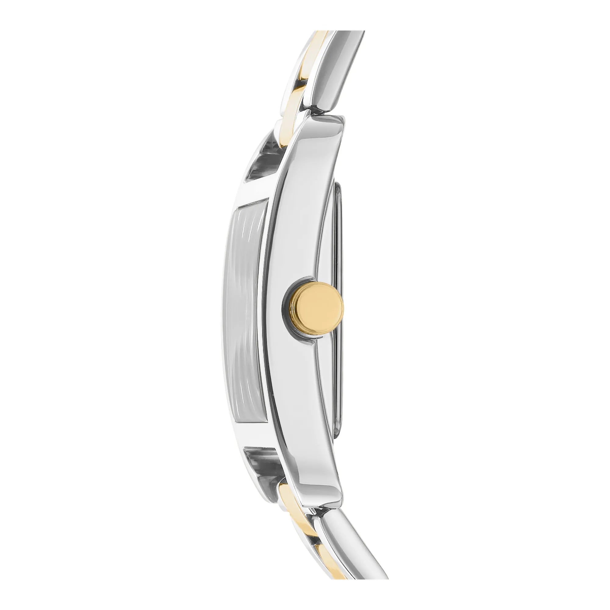 Die DKNY City Maxi in silbergrau fängt das Wesen des modernen Chic ein. Ihr flaschengrünes Zifferblatt setzt einen Farbakzent, während das Edelstahlarmband und das rechteckige Gehäuse eine schlanke Silhouette bieten. Eine perfekte Mischung aus Stil und Funktionalität, sie ist ein Muss für Modebewusste.