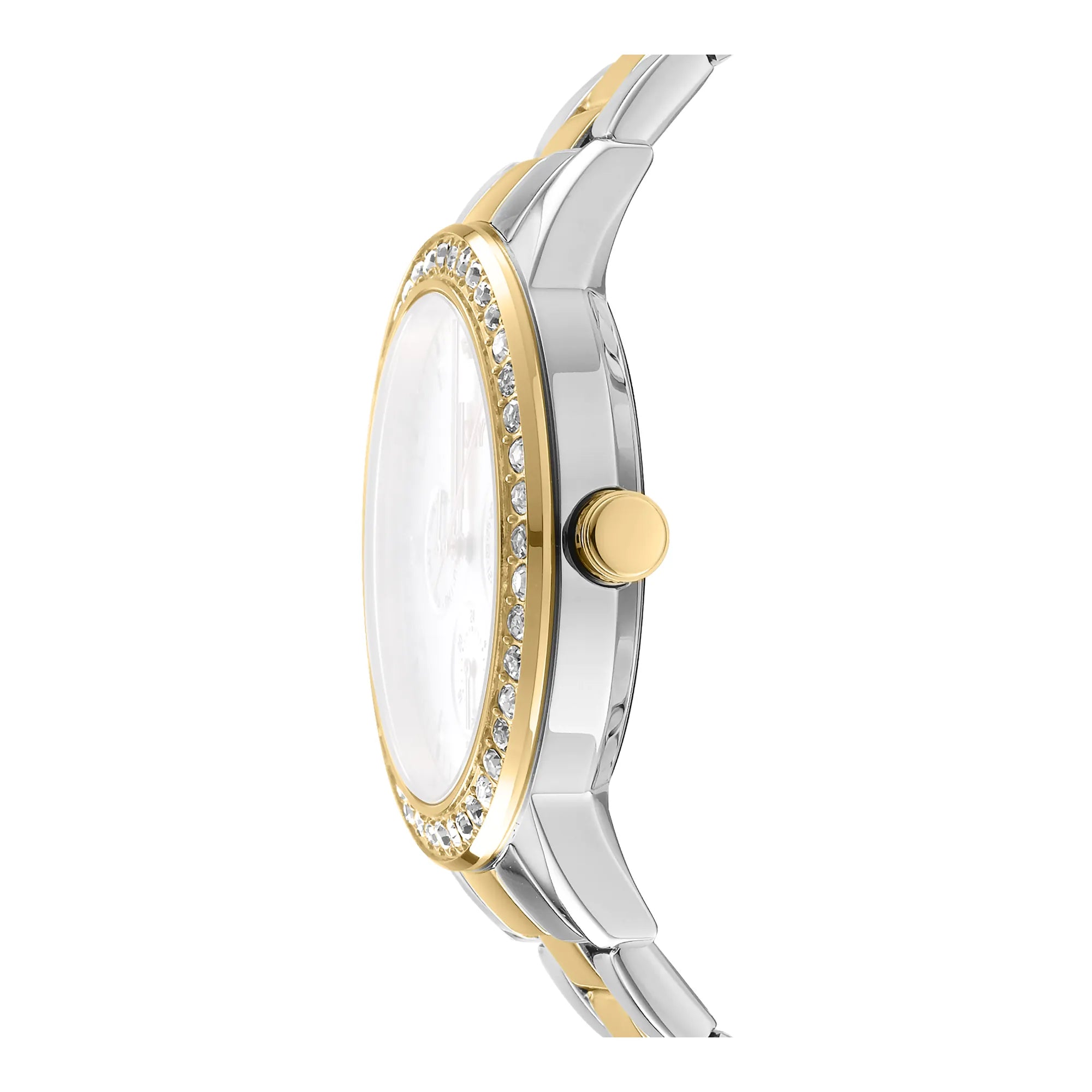 Im Herzen urbaner Eleganz erscheint die DKNY Parsons Multi Glitz Uhr als ein Leuchtturm zeitgenössischen Stils und Raffinesse. In einem raffinierten Design gefertigt, ist diese Armbanduhr ein Zeugnis moderner Mode, die Funktionalität nahtlos mit ästhetischem Reiz verbindet. Das runde Gehäuse, getaucht in einen eleganten silbergrauen Farbton, umschließt ein Mineralglas, das das filigrane Zifferblatt darunter schützt. Das flaschengrüne Zifferblatt, eine Hommage an zeitlose Eleganz, ist mit Multifunktionsanzeigen geschmückt, darunter ein Tages- und Datums-Kalender, angetrieben vom präzisen 6P29 Quarzwerk. Diese Uhr ist nicht nur ein Accessoire, sondern ein Statement von Anmut und Präzision. Das Edelstahlarmband, das im silbergrauen Glanz dem Gehäuse entspricht, legt sich mit einer Butterfly-Faltschließe um das Handgelenk und sorgt für Sicherheit und Stil. Mit einer Wasserdichtigkeit von bis zu 50 Metern ist sie ebenso praktisch wie schön und bereit, Sie durch die Abenteuer des Lebens zu begleiten. Entworfen für die moderne Frau, die sowohl Form als auch Funktion schätzt, ist diese DKNY Uhr eine Feier des modischen Fortschrittsdenkens und sorgfältiger Handwerkskunst.