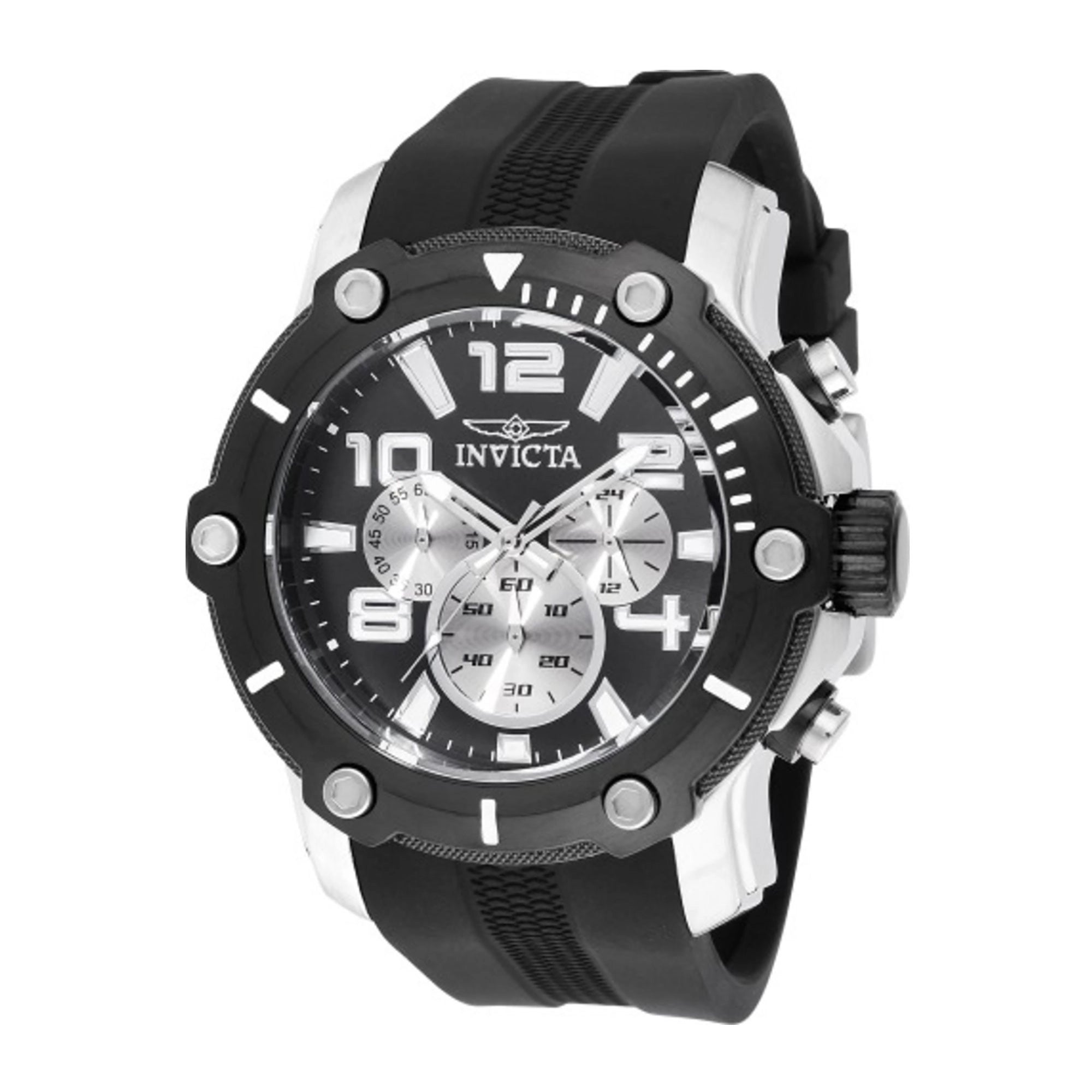 Entfesseln Sie Ihren unbeirrbaren Geist mit der Invicta Pro Diver, einem lässigen Meisterwerk für den modernen Mann. Ihre eindrucksvolle 49-mm-Präsenz in Silber und Schwarz, ergänzt durch ein elegantes Silikonarmband, setzt ein unübersehbares Statement. Spüren Sie den Nervenkitzel der Präzision, die mühelos Ihren Tag begleitet. Diese ikonische Uhr mit ihrem markanten Chronographen ist nicht nur ein Accessoire, sondern eine Erweiterung Ihrer kühnen Identität. Stellen Sie sich vor, wie sie perfekt Ihr Handgelenk schmückt, bereit für jedes Abenteuer und Ihre Reise mit unvergleichlichem Selbstvertrauen widerspiegelt.