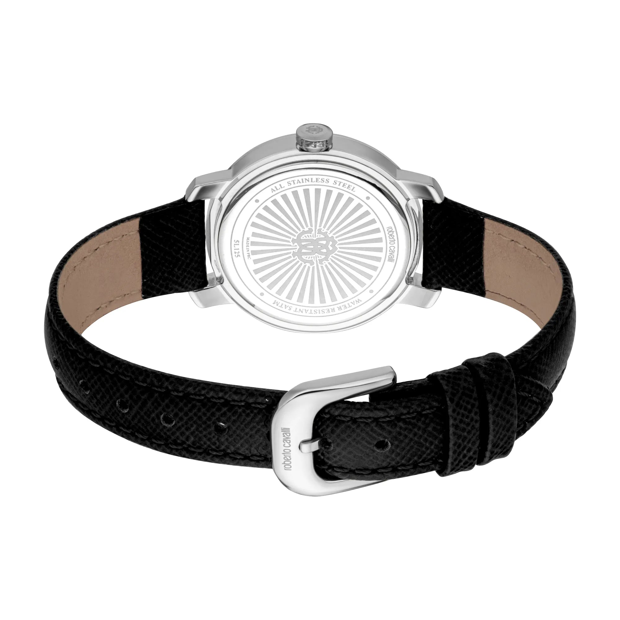 Erleben Sie die Verschmelzung von klassisch und zeitgenössisch mit der Roberto Cavalli Lady Uhr. Ihr silbergraues Gehäuse und Zifferblatt sind elegant mit einem schwarzen Lederarmband kombiniert und bieten einen anspruchsvollen Kontrast. Die Dornschließe sorgt für einen bequemen Sitz, während die Wasserbeständigkeit bis zu 50 Metern Langlebigkeit gewährleistet. Diese Uhr ist eine schicke Ergänzung für jede Garderobe, perfekt für diejenigen, die subtile Eleganz schätzen.