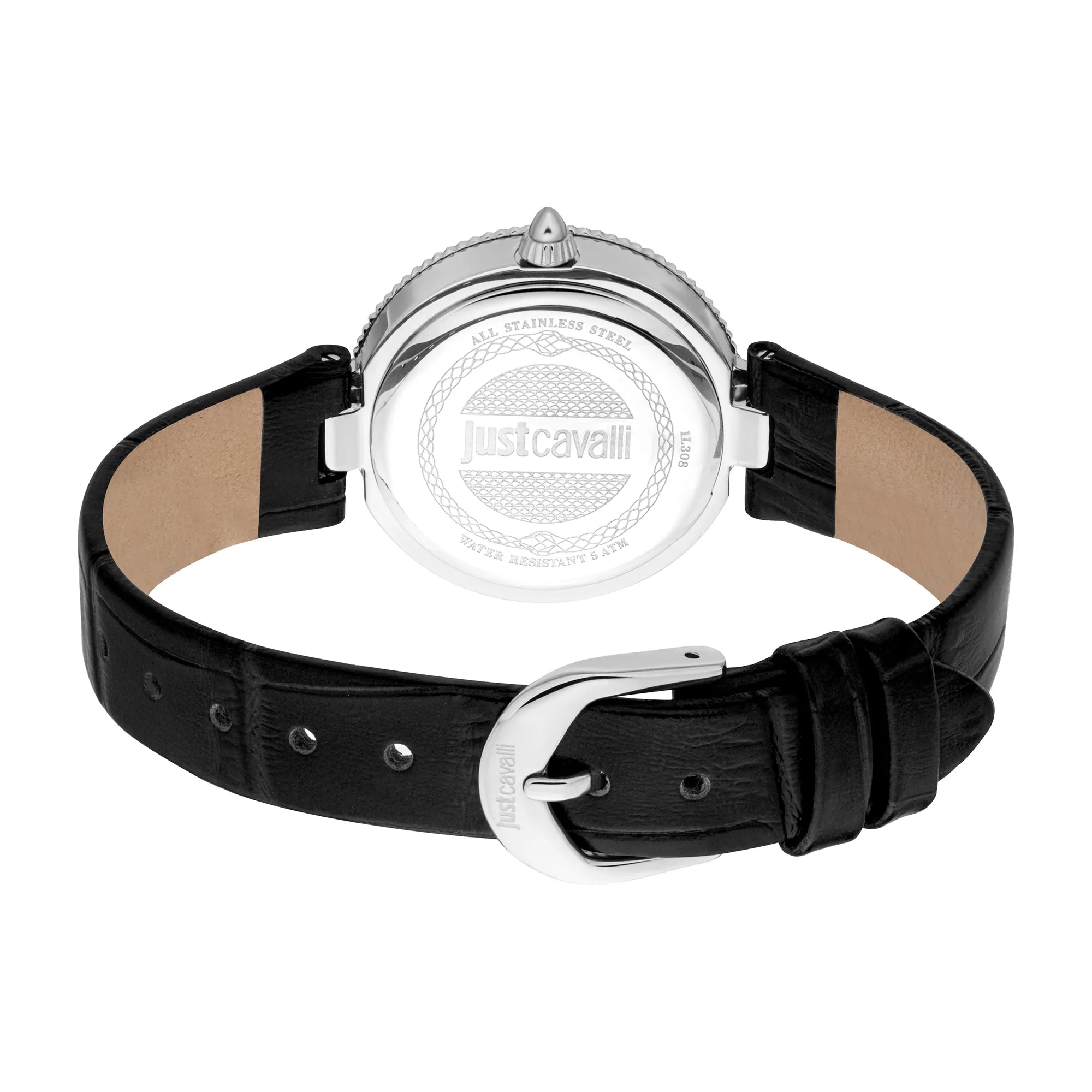 Im Bereich der Mode, wo Eleganz auf Kühnheit trifft, entsteht eine Uhr, die das Wesen moderner Raffinesse einfängt. Diese Just Cavalli Watch aus der illustren Glam Chic Kollektion ist ein Zeugnis für das Engagement der Marke für Stil und Innovation. Mit einem raffinierten Design gefertigt, strahlt ihr rundes silbergraues Gehäuse mit einem zarten Durchmesser von 30 mm eine subtile, aber auffällige Präsenz am Handgelenk aus. Das Mineralglas bietet einen klaren Blick auf das hellblaue Zifferblatt, ein Farbton, der einen Hauch zeitgenössischer Frische verleiht und an einen ruhigen Himmel an einem hellen Tag erinnert. Das Drei-Zeiger-Quarzwerk sorgt für Präzision, während die Pull & Push-Krone mühelose Zeiteinstellungen ermöglicht. Eingehüllt in ein bis zu 50 Meter wasserdichtes Gehäuse, ist diese Uhr ebenso praktisch wie schön. Das schwarze Lederarmband, gesichert mit einer Dornschließe, bietet einen bequemen und sicheren Sitz und macht sie zum idealen Accessoire für die modebewusste Frau. Diese Uhr ist nicht nur ein Zeitmessgerät, sondern ein Stil-Statement, ein Spiegelbild des kühnen Charakters und des feinen Geschmacks der Trägerin. Ob kombiniert mit einem lässigen Outfit oder einem eleganten Abendkleid, diese Just Cavalli Watch ist darauf ausgelegt, Blicke auf sich zu ziehen und Gespräche zu entfachen, und verkörpert den Geist derjenigen, die es wagen, in der Menge aufzufallen.