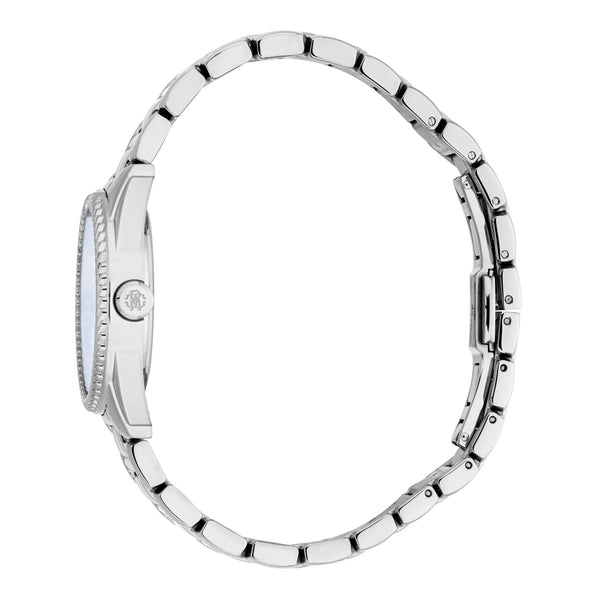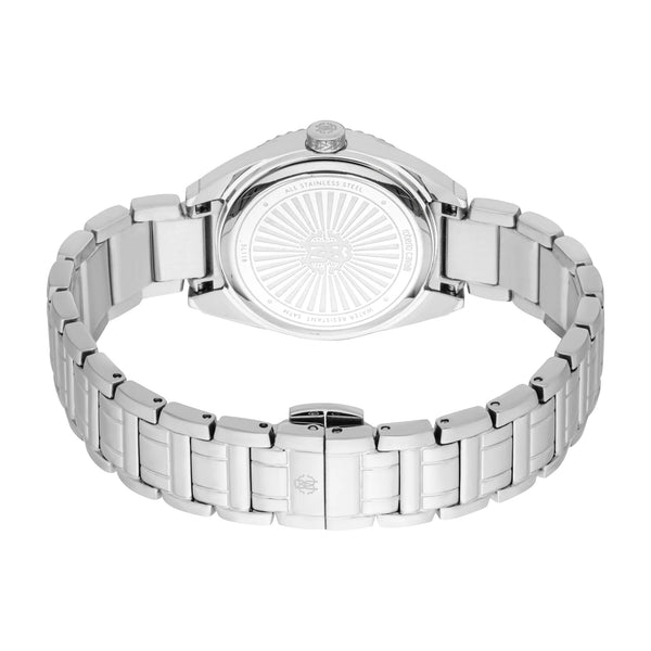 In der Welt der Eleganz und Raffinesse, in der Zeit nicht nur gemessen, sondern gefeiert wird, entsteht eine Kreation, die das Wesen der verfeinerten Mode verkörpert. Gefertigt im Herzen der Schweizer Uhrmachertradition, ist diese Roberto Cavalli Lady Uhr ein Zeugnis für das Engagement der Marke für Luxus und Stil. Ihr rundes Gehäuse, getaucht in ein glänzendes Silbergrau, fängt das Licht bei jeder Bewegung ein und schafft einen Tanz der Reflexionen, der sowohl fesselnd als auch zeitlos ist. Der Durchmesser von 30 mm ist eine perfekte Balance zwischen Subtilität und Präsenz und macht sie zu einer idealen Begleiterin für die moderne Frau, die sowohl Anmut als auch Funktionalität schätzt. Mit einer Wasserdichtigkeit von bis zu 50 Metern verspricht sie Zuverlässigkeit, ohne auf Eleganz zu verzichten. Das Mineralglas schützt ein faszinierendes blaues Zifferblatt, eine Anspielung auf die Tiefen des Ozeans, wo Träume und Realität miteinander verschmelzen. Dieser Farbtupfer verleiht einen zeitgenössischen Akzent und sorgt dafür, dass die Uhr in jeder Umgebung auffällt. Das Edelstahlarmband, ebenfalls in Silbergrau, schmiegt sich mit einem Gefühl von Kontinuität und Harmonie um das Handgelenk und wird durch eine Butterfly-Faltschließe mit Druckknopf für Komfort und Sicherheit gesichert. Im Inneren sorgt das Quarzwerk, angetrieben vom Kaliber GL32, für Präzision und Zuverlässigkeit, während die Drei-Zeiger-Anzeige einen klassischen Touch bietet. Diese Roberto Cavalli Uhr ist nicht nur ein Accessoire, sondern ein Stil-Statement, ein Spiegelbild der inneren Eleganz der Trägerin und eine Feier der Kunst der Zeitmessung.