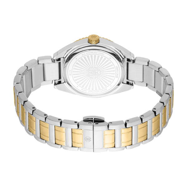 In der Welt der Mode, in der Eleganz auf Innovation trifft, entsteht eine Uhr, die das Wesen von Raffinesse und Stil verkörpert. Gefertigt im Herzen der Schweizer Uhrmacherkunst, ist diese Roberto Cavalli Lady Uhr ein Zeugnis für verfeinertes Design und zeitlose Anziehungskraft. Ihr rundes Gehäuse, getaucht in ein glänzendes Silbergrau, fängt das Licht bei jeder Bewegung ein und erzeugt einen Tanz von Reflexionen, der sowohl fesselnd als auch subtil ist. Der Durchmesser von 30 mm findet die perfekte Balance zwischen Zartheit und Präsenz und macht sie zu einer idealen Begleiterin für die moderne Frau, die sowohl Anmut als auch Funktionalität schätzt. Mit einer Wasserdichtigkeit von bis zu 50 Metern ist diese Uhr so vielseitig wie schön und bereit, Sie vom Konferenzraum bis zum Ballsaal zu begleiten. Das Mineralglas schützt das Zifferblatt und sorgt für Klarheit und Haltbarkeit, während die Pull & Push-Krone eine einfache Einstellung ermöglicht. Das Edelstahlarmband, ebenfalls in Silbergrau, schmiegt sich mit einem Gefühl von Kontinuität und Eleganz um das Handgelenk und wird durch eine Butterfly-Faltschließe mit Druckknopf für zusätzlichen Komfort gesichert. Das Zifferblatt, eine harmonische Erweiterung des Gehäuses, spiegelt das Silbergrau-Thema wider und schafft eine nahtlose Ästhetik, die sowohl zeitgenössisch als auch klassisch ist. Angetrieben von einem präzisen Quarzwerk verfügt diese Uhr über eine 3-Zeiger-Anzeige, angetrieben vom zuverlässigen GL32-Kaliber, das sicherstellt, dass die Zeit immer auf Ihrer Seite ist. Diese Roberto Cavalli Lady Uhr ist nicht nur ein Accessoire, sondern ein Stil-Statement, ein Spiegelbild des tadellosen Geschmacks der Trägerin und eine Feier der Kunst der Uhrmacherei.