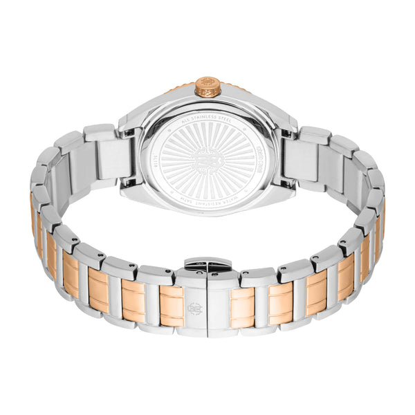Die Roberto Cavalli Lady Uhr in silbergrau ist ein Zeugnis minimalistischer Eleganz. Ihr rundes Gehäuse und Zifferblatt werden perfekt von einem Edelstahlarmband ergänzt und bieten eine Wasserdichtigkeit bis zu 50 Metern für eine Kombination aus Stil und Funktionalität.