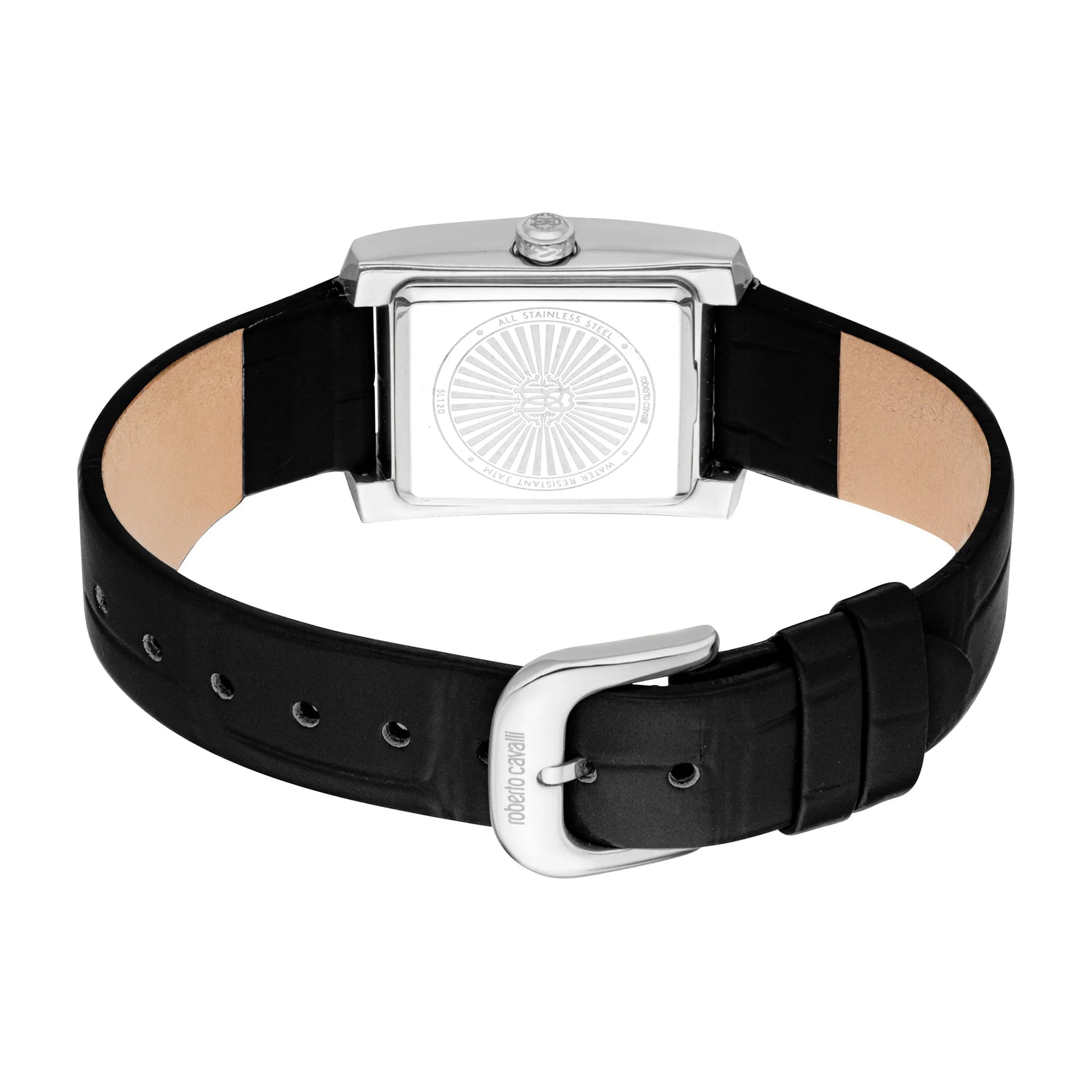 In der Welt der Mode, in der Eleganz auf Innovation trifft, entsteht eine Uhr, die das Wesen von Raffinesse und Stil einfängt. Gefertigt im Herzen der Schweizer Uhrmacherkunst, ist diese Roberto Cavalli Lady Uhr ein Zeugnis für verfeinertes Design und zeitlose Anziehungskraft. Ihr rechteckiges Gehäuse, getaucht in ein glänzendes Silbergrau, strahlt Modernität und Anmut aus und ergänzt perfekt die schlanken Linien ihrer Silhouette. Das nachtblau Zifferblatt, das an einen sternenklaren Abendhimmel erinnert, verleiht einen Hauch von Geheimnis und Tiefe, während die Drei-Zeiger-Anzeige, angetrieben von einem präzisen Quarzwerk, sicherstellt, dass die Zeit immer auf Ihrer Seite ist. Das Mineralglas bietet eine klare Sicht auf das Zifferblatt, geschützt durch eine Pull & Push Krone, die sich nahtlos in das Design einfügt. Ein schwarzes Lederband, weich und dennoch strapazierfähig, schmiegt sich bequem um das Handgelenk und wird durch eine klassische Dornschließe gesichert, was es zu einem idealen Begleiter für jeden Anlass macht. Wasserresistent und für die modebewusste Frau entworfen, ist diese Uhr mehr als nur ein Accessoire, sie ist ein Statement von Eleganz und Individualität, ein Stück, das das Herz derjenigen anspricht, die den Mut haben, ihren einzigartigen Stil zu leben.