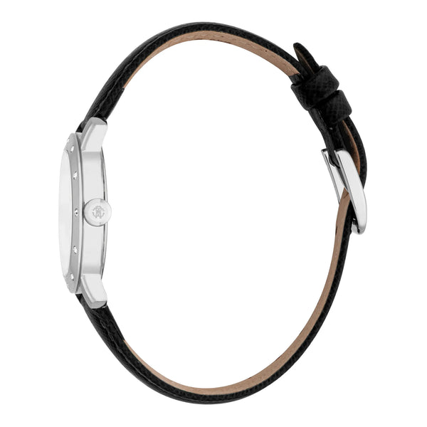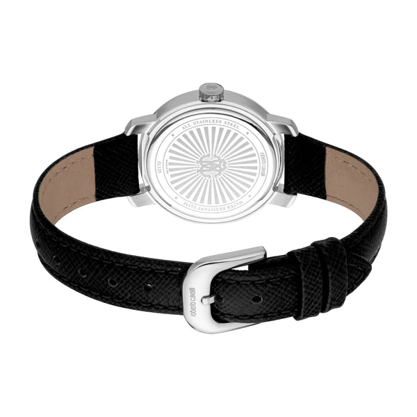 In der Welt der Mode, in der Eleganz auf Innovation trifft, entsteht eine Uhr, die das Wesen von Raffinesse und Stil verkörpert. Gefertigt im Herzen der Schweizer Uhrmacherkunst, ist diese Roberto Cavalli Lady Uhr ein Zeugnis für verfeinertes Design und zeitlose Anziehungskraft. Ihr rundes Gehäuse, getaucht in ein glänzendes Silbergrau, fängt das Licht bei jeder Bewegung ein und schafft ein Spiel von Reflexionen, das sowohl fesselnd als auch subtil ist. Mit einem Gehäusedurchmesser von 30 mm sitzt sie anmutig am Handgelenk, ein perfekter Begleiter für die moderne Frau, die sowohl Form als auch Funktion schätzt. Das Mineralglas bietet ein klares Fenster zur Seele der Uhr und schützt das silbergraue Zifferblatt, das die Eleganz des Gehäuses widerspiegelt. Das Zifferblatt mit seiner Drei-Zeiger-Anzeige, angetrieben von einem präzisen Quarzwerk, sorgt dafür, dass die Zeit immer auf Ihrer Seite ist. Das Kaliber GL32 ist ein stiller Wächter der Genauigkeit, ein Versprechen von Zuverlässigkeit bei jedem Ticken. Das Handgelenk umschließt ein Band aus luxuriösem schwarzem Leder, eine haptische Freude, die die silbernen Töne der Uhr ergänzt. Die Dornschließe sorgt für einen sicheren Sitz und ermöglicht es der Trägerin, ihren Tag mit Selbstvertrauen zu meistern. Bis zu 50 Meter wasserdicht, ist diese Uhr so vielseitig wie schön und bereit, Sie vom Konferenzraum bis zum Abendessen zu begleiten. In jedem Detail, vom Pull & Push-Krone bis zur harmonischen Materialmischung, ist diese Roberto Cavalli Lady Uhr eine Feier der Weiblichkeit und Mode, ein Stück, das das Herz derjenigen anspricht, die den Mut haben, ihren eigenen Stil zu definieren.