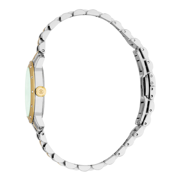 In der Welt der Mode, in der Eleganz auf Präzision trifft, entsteht eine Uhr, die das Wesen von Raffinesse und Stil verkörpert. Gefertigt im Herzen der Schweizer Uhrmacherkunst, ist diese Roberto Cavalli Lady Uhr ein Zeugnis für verfeinertes Design und zeitlose Anziehungskraft. Ihr rundes Gehäuse, getaucht in ein glänzendes Silbergrau, umrahmt ein Zifferblatt in tiefem Flaschengrün, das ein Gefühl von Geheimnis und Tiefe hervorruft. Das Mineralglas bietet einen klaren Blick auf die Drei-Zeiger-Anzeige, angetrieben vom zuverlässigen GL32 Quarzwerk, das sicherstellt, dass jede Sekunde mit Präzision erfasst wird. Das Edelstahlarmband, ebenfalls in passendem Silbergrau, schmiegt sich mit Anmut um das Handgelenk und wird durch eine Butterfly-Faltschließe mit Druckknopf für Komfort und Leichtigkeit gesichert. Mit einer Wasserdichtigkeit von bis zu 50 Metern ist diese Uhr nicht nur ein Mode-Statement, sondern ein vielseitiger Begleiter für die moderne Frau. Die Pull & Push-Krone fügt einen Hauch von Praktikabilität hinzu und ermöglicht einfache Anpassungen. Mit nur 62 Gramm Gewicht sitzt sie leicht und doch selbstbewusst, eine perfekte Mischung aus Form und Funktion. Diese Roberto Cavalli Uhr ist mehr als ein Accessoire, sie ist eine Feier der Weiblichkeit und Mode, ein Stück, das das Herz derjenigen anspricht, die ihren einzigartigen Stil zu leben wagen.