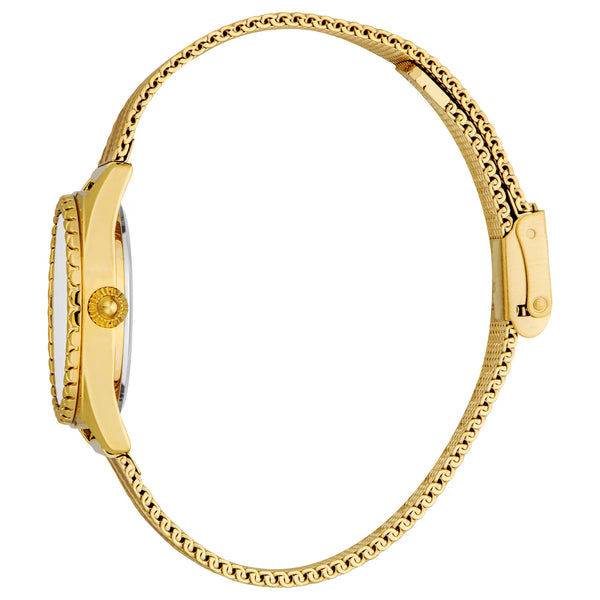 In der Welt der Mode, in der Eleganz auf Kühnheit trifft, steht die Just Cavalli Lustro Uhr aus der Animalier Kollektion als Zeugnis für raffiniertes Design und mutigen Charakter. Gefertigt im Herzen der Schweizer Uhrmacherkunst, fängt dieses exquisite Zeitmesser die Essenz moderner Weiblichkeit mit seinem runden Gehäuse aus Gelbgold ein, das mit Raffinesse glänzt. Der Durchmesser von 30 mm ist perfekt proportioniert für das Handgelenk einer Frau, die sowohl Stil als auch Substanz schätzt. Wasserresistent und geschützt durch ein Mineralglas, ist diese Uhr ebenso praktisch wie schön und bereit, Sie durch die Abenteuer des Lebens zu begleiten. Die Pull & Push Krone verleiht einen Hauch klassischen Charmes, während der verstellbare Schiebverschluss eine perfekte Passform gewährleistet. Das Edelstahlarmband, ebenfalls in einem luxuriösen Gelbgoldton, ergänzt das Gehäuse und schafft einen nahtlosen Fluss von Eleganz. Das silbergraue Zifferblatt mit seinem Drei-Zeiger-Quarzwerk bietet einen subtilen, aber auffälligen Kontrast und verkörpert einen Hauch zeitgenössischer Raffinesse, der sowohl schick als auch zeitlos ist. Diese Just Cavalli Uhr ist mehr als nur ein Accessoire, sie ist ein Statement von Individualität und Anmut, entworfen für die Frau, die es wagt, in der Menge aufzufallen. Bei jedem Blick auf Ihr Handgelenk werden Sie an die perfekte Verbindung von modischem Design und der dauerhaften Anziehungskraft schweizerischer Handwerkskunst erinnert.