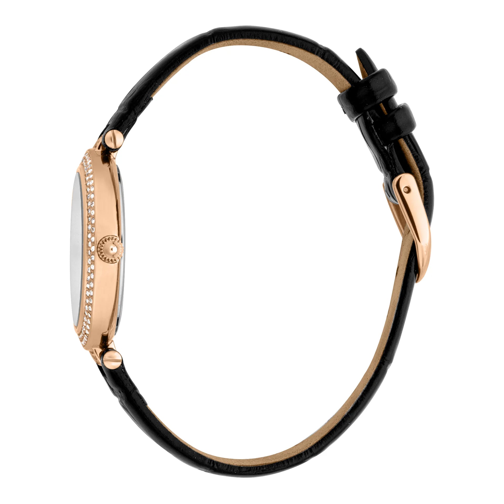 Im Bereich der Zeitmesser, wo Eleganz auf Kühnheit trifft, entsteht eine Kreation, die das Wesen moderner Raffinesse einfängt. Gefertigt im Herzen der Schweizer Uhrmacherkunst, ist diese Just Cavalli Uhr aus der JC1L274 Savoca Kollektion ein Zeugnis für das Engagement der Marke für modisches Design. Das runde Gehäuse, getaucht in einen luxuriösen Roségoldton, strahlt eine Wärme aus, die das raffinierte Design der Uhr ergänzt. Mit einem Gehäusedurchmesser von 32 mm sitzt sie anmutig am Handgelenk, ein perfekter Begleiter für die anspruchsvolle Frau, die sowohl Stil als auch Substanz schätzt. Das Mineralglas bietet einen klaren Blick auf das silbergraue Zifferblatt, auf dem drei Zeiger in einem präzisen Quarzuhrwerk tanzen, eine Symphonie der Zeitmessungsexzellenz. Das schwarze Lederarmband, gesichert mit einer Dornschließe, verleiht einen Hauch klassischer Eleganz, während die Wasserdichtigkeit von bis zu 50 Metern sicherstellt, dass diese Uhr ebenso praktisch wie schön ist. Die Pull & Push Krone lädt zur Interaktion ein, eine taktile Erinnerung an die Handwerkskunst, die im Inneren liegt. Diese Just Cavalli Uhr ist nicht nur ein Accessoire, sie ist ein Statement der Individualität, eine Feier des Kühnen und Schönen. Ob getragen zu einem lässigen Ensemble oder einem Abendkleid, sie verspricht, jedes Outfit mit ihrem zeitlosen Reiz zu veredeln.