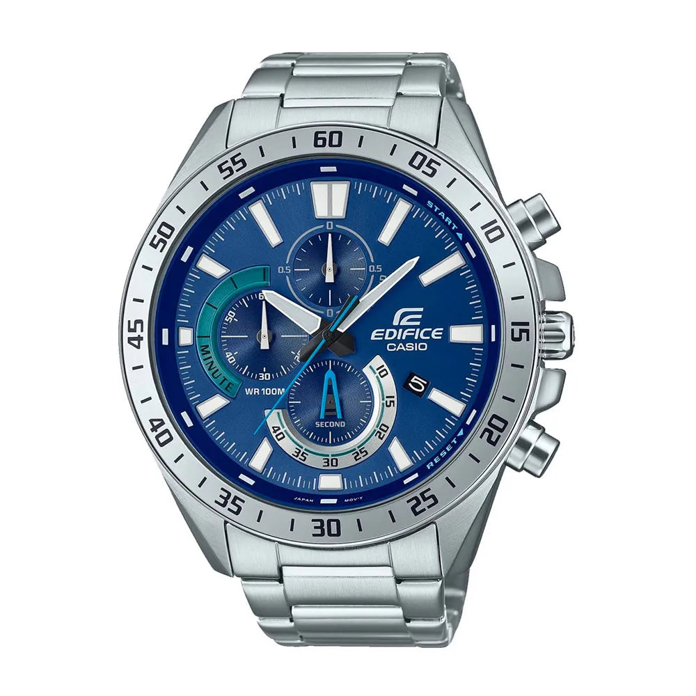 Die CASIO Edifice in silbergrau und blau ist eine auffällige Mischung aus Stil und Innovation. Ihr 50mm rundes Gehäuse und das blaue Zifferblatt werden durch ein Edelstahlarmband mit Faltschließe ergänzt. Mit 100m Wasserdichtigkeit ist diese Uhr für diejenigen konzipiert, die sowohl Eleganz als auch Funktionalität schätzen.