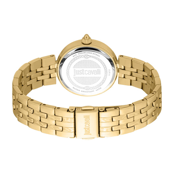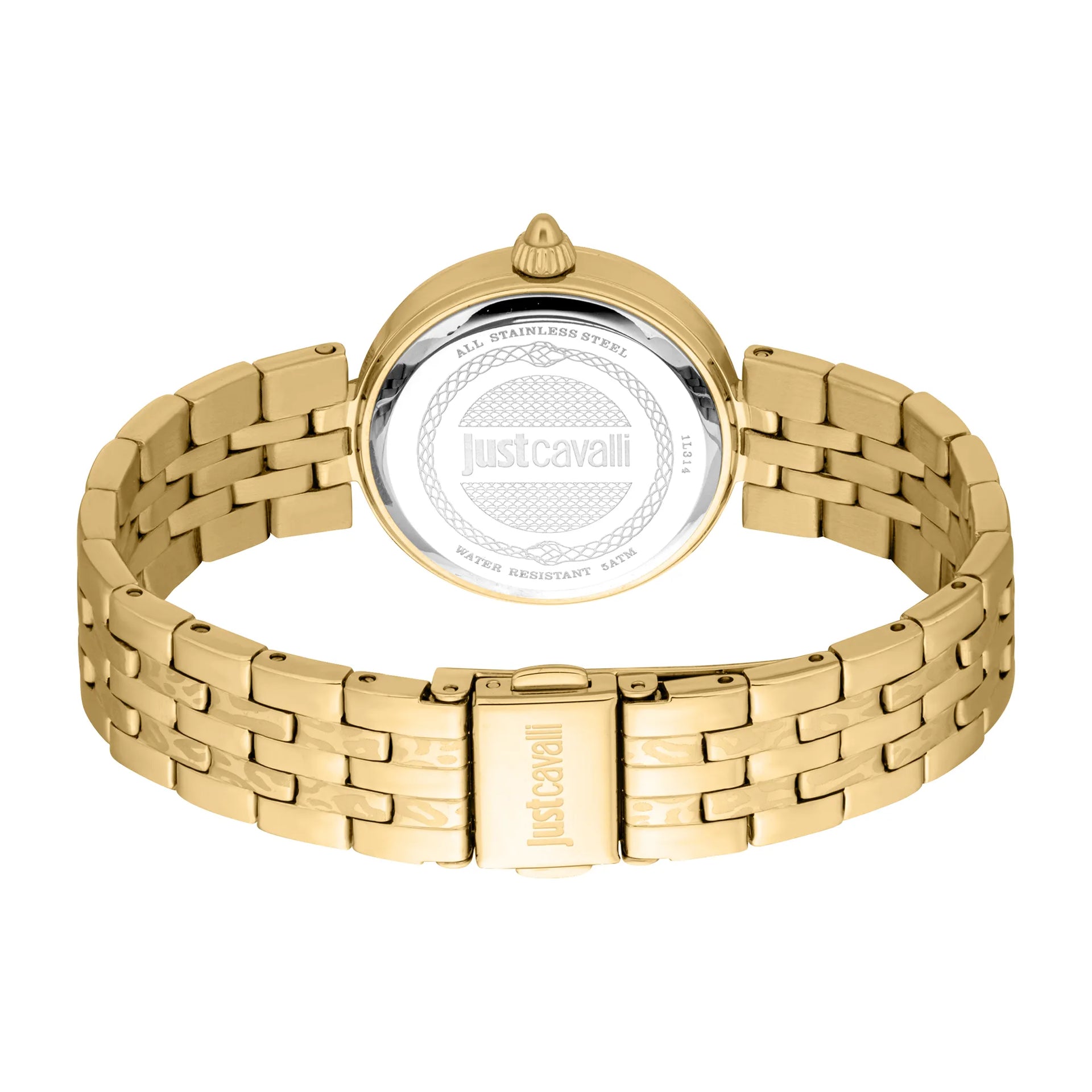 Im Bereich der Mode, wo Eleganz auf Kühnheit trifft, entsteht eine Uhr, die das Wesen von Raffinesse und Mut einfängt. Diese Just Cavalli Uhr aus der berühmten Just Cavalli Animalier Kollektion ist ein Zeugnis für verfeinertes Design und exquisite Handwerkskunst. Gefertigt in runder Form, strahlt das Gehäuse in einem luxuriösen Gelbgoldton und ergänzt perfekt das Edelstahlarmband, das dieselbe opulente Farbe widerspiegelt. Die Schmetterlings-Faltschließe mit Druckknopf sorgt für eine nahtlose Passform und verleiht ihrem klassischen Reiz einen Hauch moderner Bequemlichkeit. Im Herzen dieser Uhr liegt ein flaschengrünes Zifferblatt, ein tiefer und bezaubernder Farbton, der ein Gefühl von Geheimnis und Anziehungskraft hervorruft. Das Mineralglas schützt das Zifferblatt, während die Pull-&-Push-Krone eine einfache Einstellung ermöglicht. Mit einem Gehäusedurchmesser von 30 mm ist diese Uhr für die modebewusste Frau konzipiert, die sowohl Stil als auch Funktionalität schätzt. Bis zu 50 Meter wasserdicht, ist sie ebenso praktisch wie schön. Das Quarzwerk sorgt für Präzision, während die Drei-Zeiger-Anzeige eine klare und elegante Zeitablesung bietet. Diese Just Cavalli Uhr ist nicht nur ein Accessoire, sondern ein Ausdruck von Charakter und Eleganz, ein perfekter Begleiter für diejenigen, die es wagen, in einer Welt der Konformität aufzufallen.