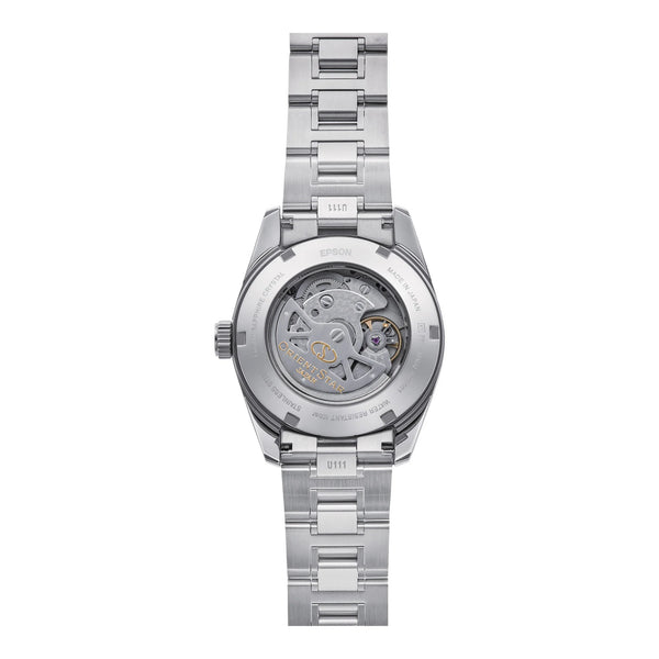 Im Reich zeitloser Eleganz steht diese Unisex-Uhr als Zeugnis klassischer Raffinesse, gefertigt in einer harmonischen Mischung aus Tradition und Moderne. Ihr rundes Gehäuse, ein verfeinertes 38 mm im Durchmesser, erstrahlt in einem silbergrauen Farbton und verströmt eine zurückhaltende, aber unbestreitbare Anziehungskraft. Das olivgrüne Zifferblatt, eine Hommage an die ruhige Schönheit der Natur, wird von einem Saphirglas geschützt, das Klarheit und Widerstandsfähigkeit gewährleistet. Ein transparenter Boden offenbart den filigranen Tanz ihres Innenlebens und lädt Bewunderung von denen ein, die die Kunst der Uhrmacherei schätzen. Das Edelstahlarmband, das in seiner silbergrauen Eleganz dem Gehäuse entspricht, umschließt das Handgelenk mit einem Gefühl von Sicherheit und Stil, während die Faltschließe mit Druckknopfverschluss sowohl Komfort als auch Raffinesse bietet. Mit einer Wasserdichtigkeit von bis zu 100 Metern ist diese Uhr ebenso vielseitig wie schön und bereit, Sie vom Konferenzraum bis zum Strand zu begleiten. Die Zug- und Drückkrone fügt einen Hauch von Praktikabilität hinzu, während das Gesamtdesign für ein Erbe der Exzellenz und eine Zukunft voller endloser Möglichkeiten spricht, was sie zu einem perfekten Begleiter für diejenigen macht, die sowohl Form als auch Funktion schätzen.