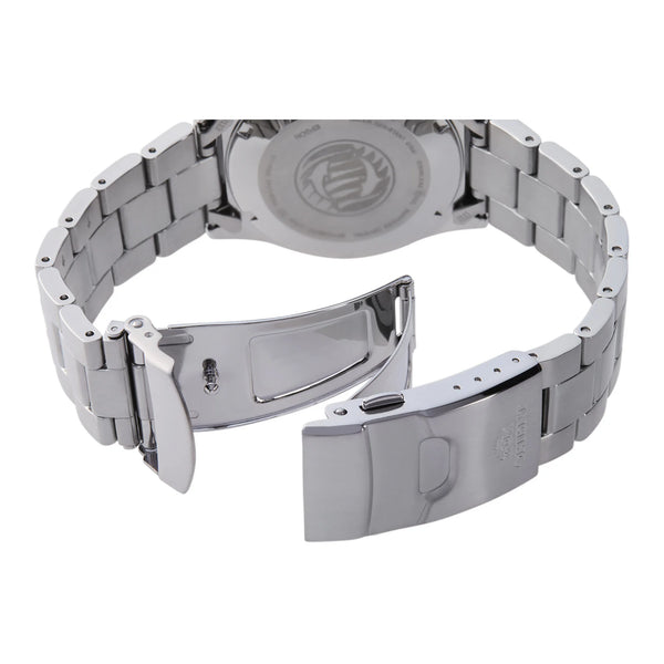 In der Welt der Zeitmesser, in der Präzision auf Eleganz trifft, entsteht eine Kreation, die den Geist von Abenteuer und Raffinesse verkörpert. Gefertigt im Herzen horologischer Exzellenz, ist die ORIENT AA00 Kamasu, auch bekannt als Mako III, ein Zeugnis für die Hingabe der Marke an Qualität und Stil. Diese ORIENT Sports Uhr ist für den modernen Mann entworfen, der sowohl Funktionalität als auch Flair in seinen Accessoires sucht. Mit einem verfeinerten runden Gehäuse in einem eleganten silbergrauen Farbton fängt sie das Wesen zeitlosen Designs ein. Der Durchmesser von 41 mm bietet eine perfekte Balance zwischen Präsenz und Komfort und macht sie zu einem idealen Begleiter für jeden Anlass. Tauchen Sie mit Vertrauen in die Tiefen ein, denn diese Uhr bietet eine Taucher-Wasserbeständigkeit von bis zu 200 Metern und gewährleistet Zuverlässigkeit selbst in den herausforderndsten Umgebungen. Das Saphirglas verleiht einen Hauch von Luxus, während die verschraubte Krone ihre Haltbarkeit erhöht. Das Edelstahlarmband, das farblich zum Gehäuse in Silbergrau passt, ist sowohl robust als auch stilvoll und wird mit einer Faltschließe mit Druckknopf und Sicherheitsverschluss für zusätzliche Sicherheit gesichert. Das schwarze Zifferblatt, eine Leinwand der Raffinesse, beherbergt ein mechanisches Uhrwerk, angetrieben vom Kaliber F6922, komplett mit 22 Steinen. Diese Uhr zeigt nicht nur die Zeit mit ihren drei Zeigern an, sondern informiert Sie auch mit einem Tages- und Datumsanzeiger. Mit einer täglichen Genauigkeit von +25/-15 verspricht sie Präzision bei jedem Ticken. Ob von Hand aufgezogen oder automatisch, passt sich dieser Zeitmesser Ihrem Lebensstil an und macht ihn zu einer vielseitigen Ergänzung Ihrer Sammlung. Die ORIENT AA00 Kamasu ist mehr als nur eine Uhr, sie ist ein Stil-Statement und ein Zeugnis des abenteuerlichen Geistes in Ihnen.